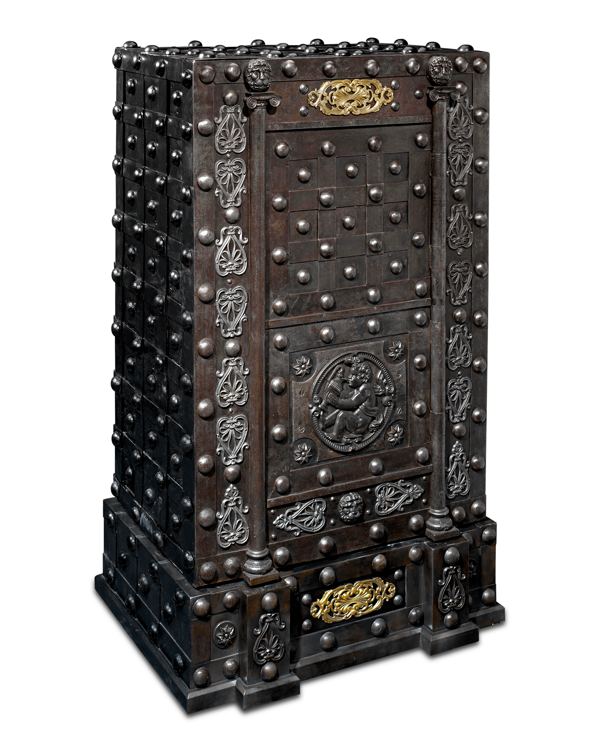 Crafted by Magaud de Charf in Marseille, France, this safe is among the rare surviving examples of its size and intricacy. Its imposing scale and refined detailing point to a commission by someone of considerable status, and its construction speaks to the hand of a master metalsmith.