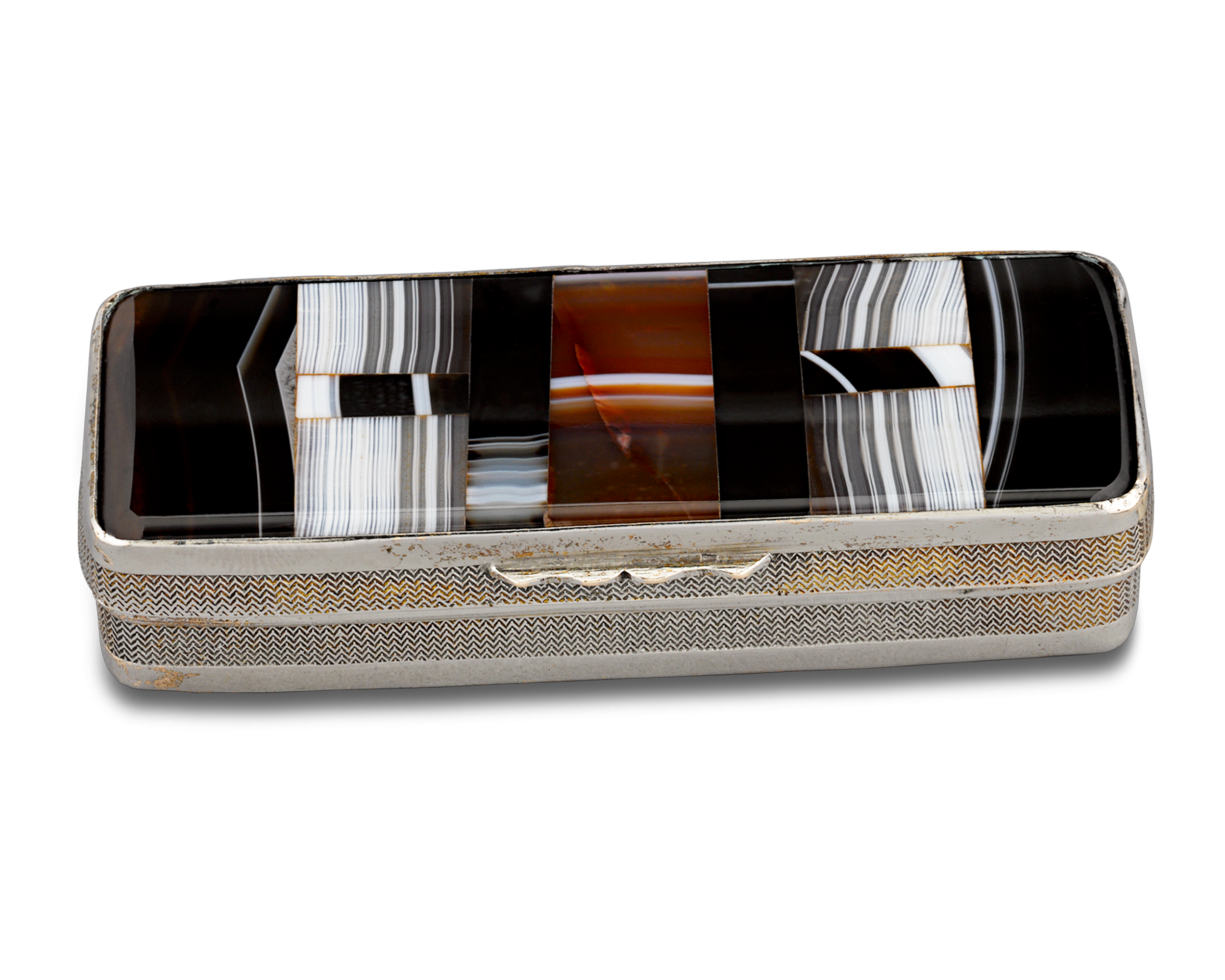 - The diverse beauty of agate is fully on display in this neoclassical gold snuff box