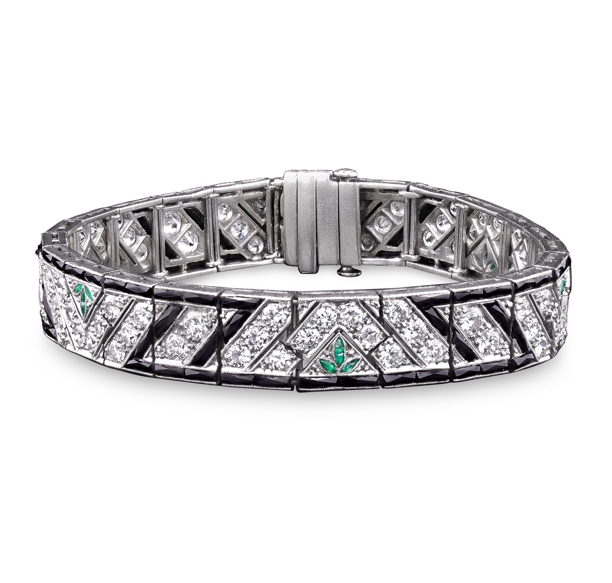 - This exceptional Art Deco bracelet captures the bold geometry and refined elegance of the era
