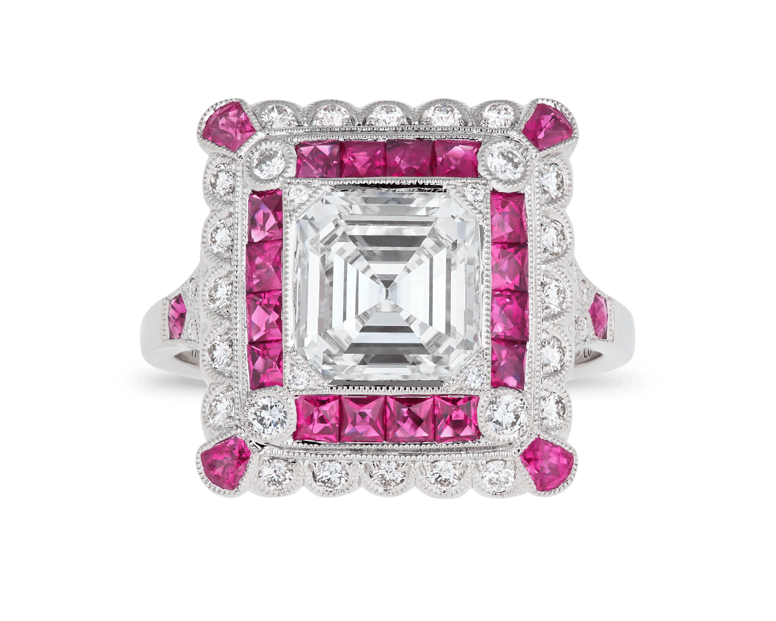 - This Art Deco-style ring centers a magnificent 1.92-carat square emerald cut diamond