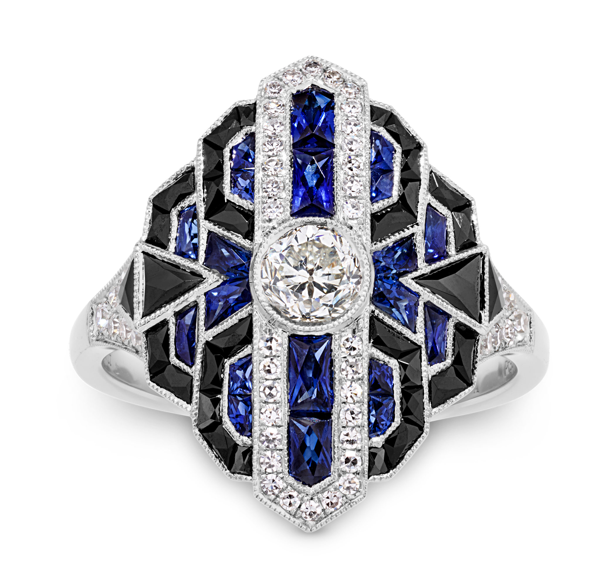 Learn MoreArt Deco-Style Diamond, Sapphire and Onyx Ring