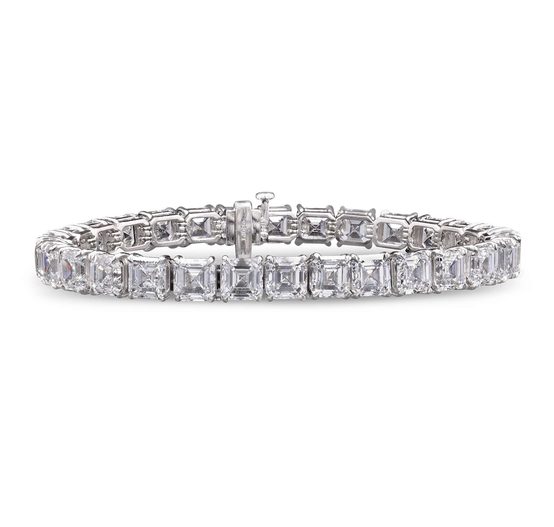 - This classic line bracelet dazzles with 30.12 carats of Asscher cut diamonds