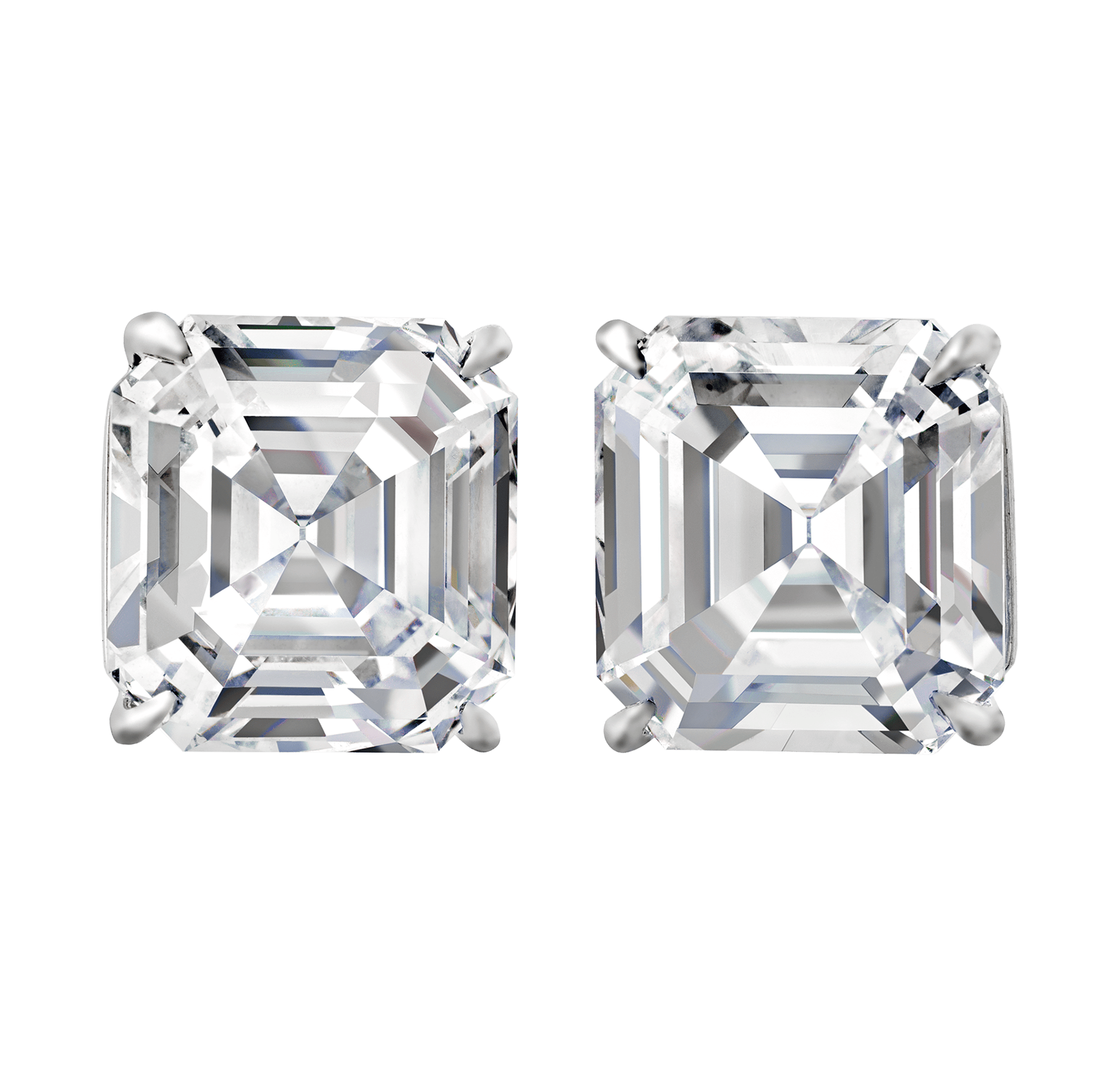 - Cut in the desirable Asscher cut style, the jewels display remarkable brilliance and sparkle