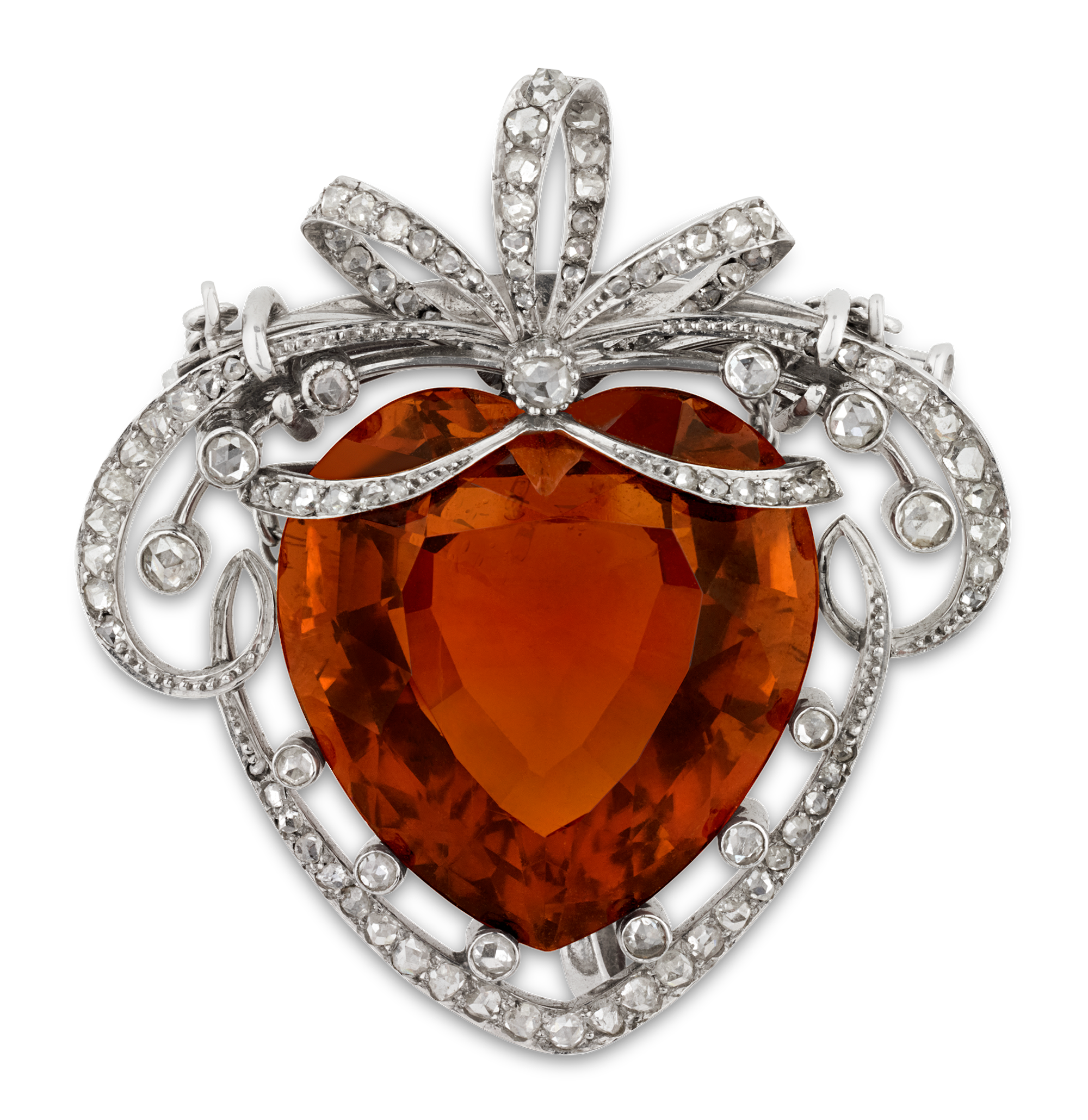 - This exquisite Belle Époque brooch centers a radiant heart-shaped madeira citrine totaling 25 carats