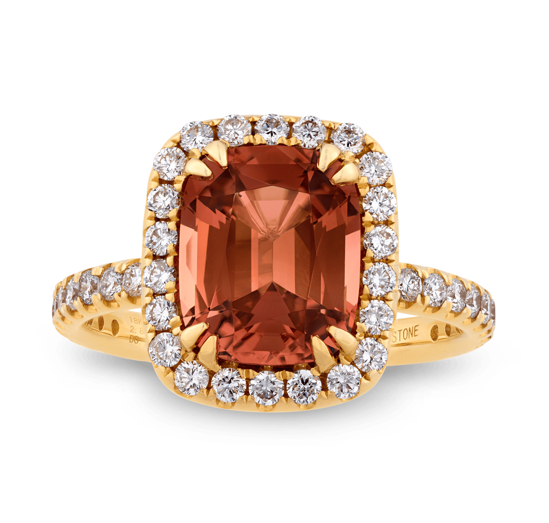 - The gemstone displays a mesmerizing gradient of orange and pink