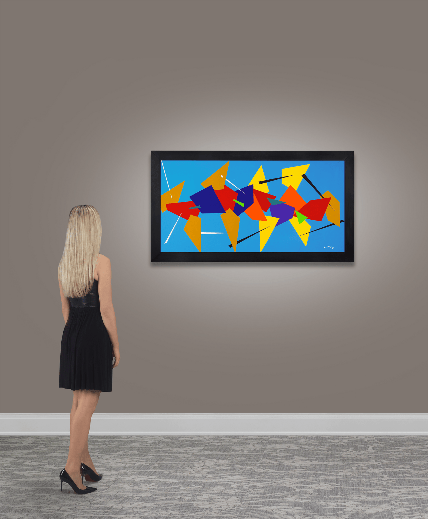 - The work invokes the colorful, minimalist geometry of masters like Piet Mondrian and Frank Stella
