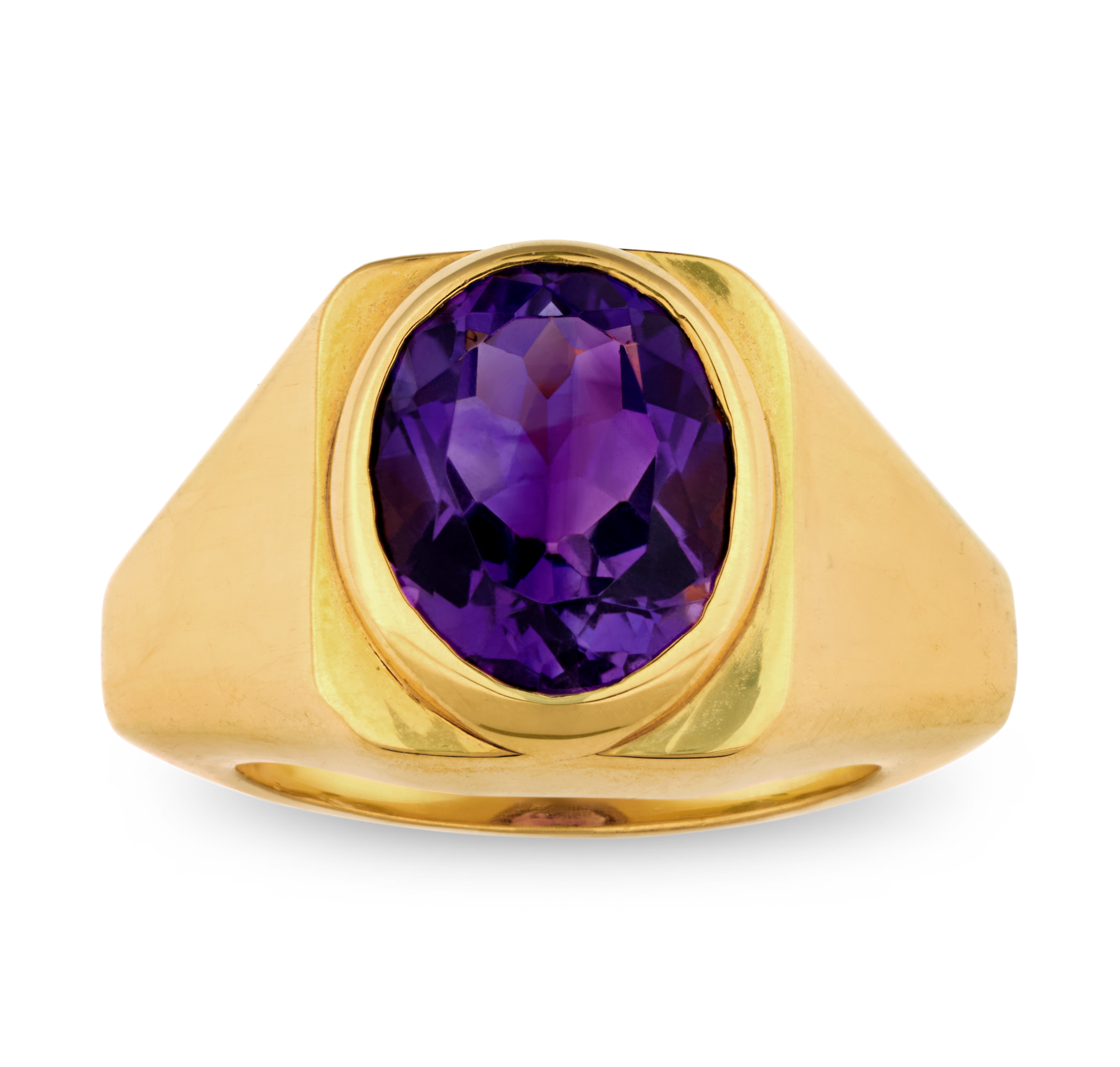 - This vibrant ring by the Italian jewelry house Bulgari centers a richly saturated oval cut amethyst
