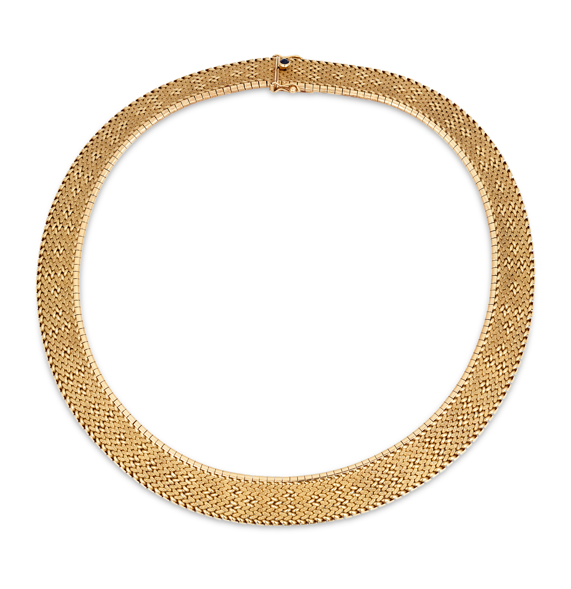- This elegant necklace by Caplain Paris is crafted from woven 18K yellow gold