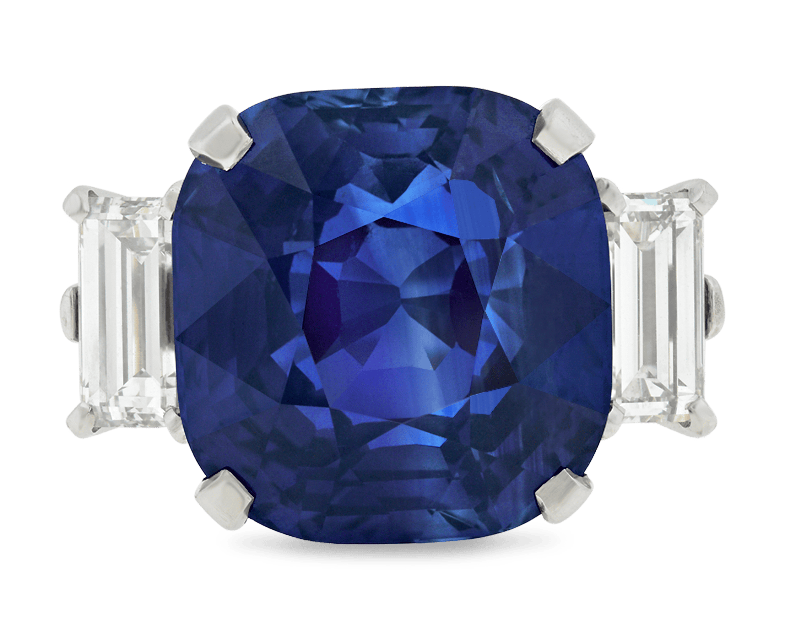 - A pair of emerald cut diamonds weighing 1.95 carats join this elegant sapphire