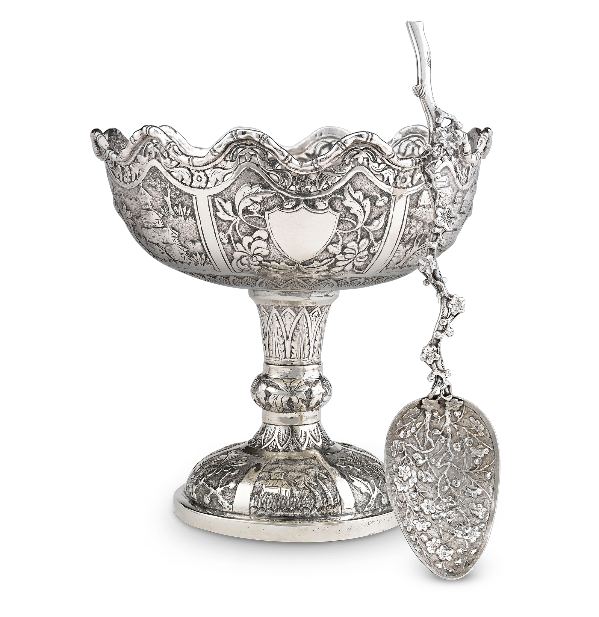 - This spoon and bowl exemplifies the remarkable artistry of Chinese export silver