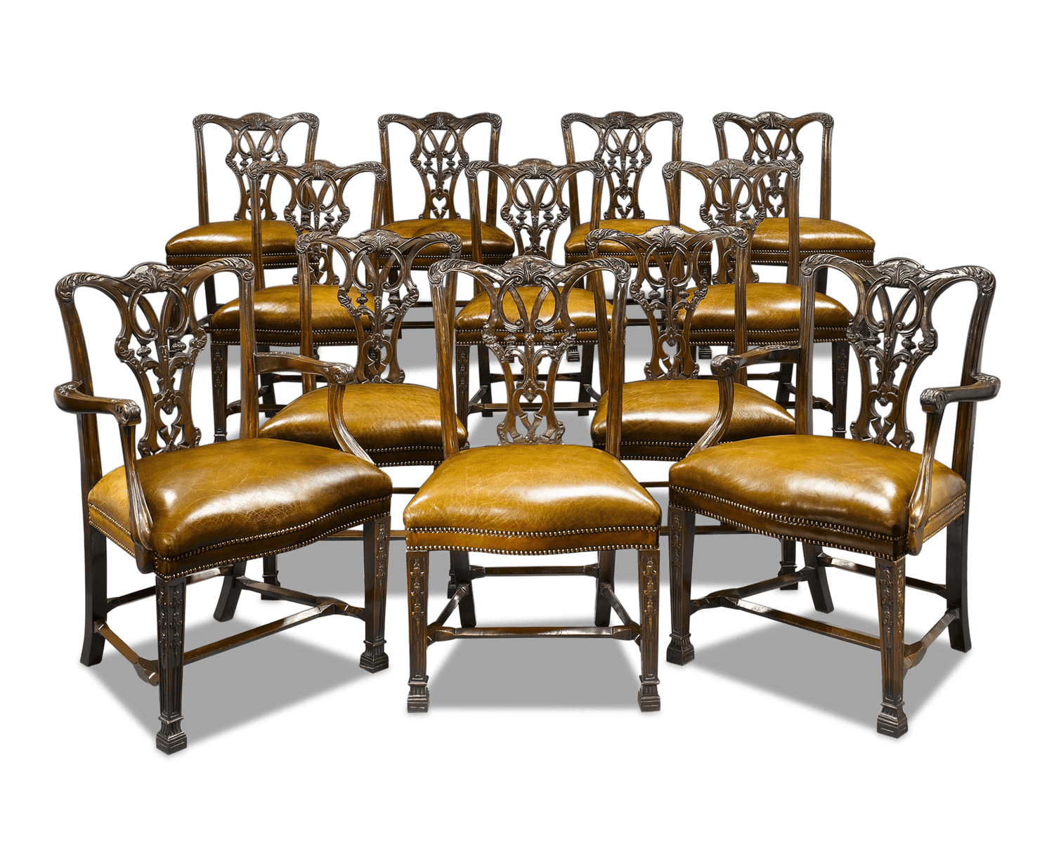 - This majestic set of 12 mahogany dining chairs was inspired by Thomas Chippendale