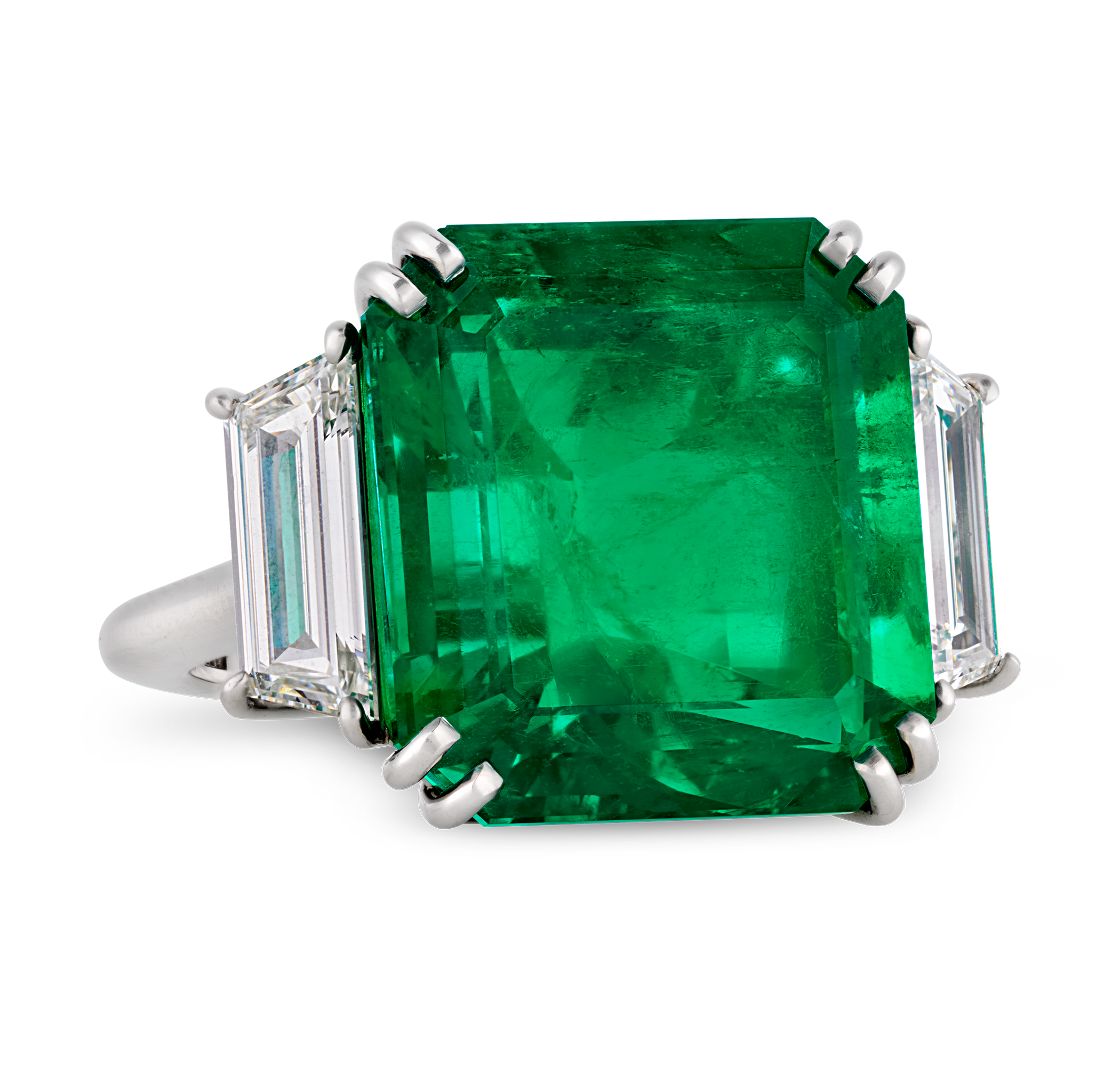 - This ring centers a monumental 20.66-carat emerald cut Colombian emerald
