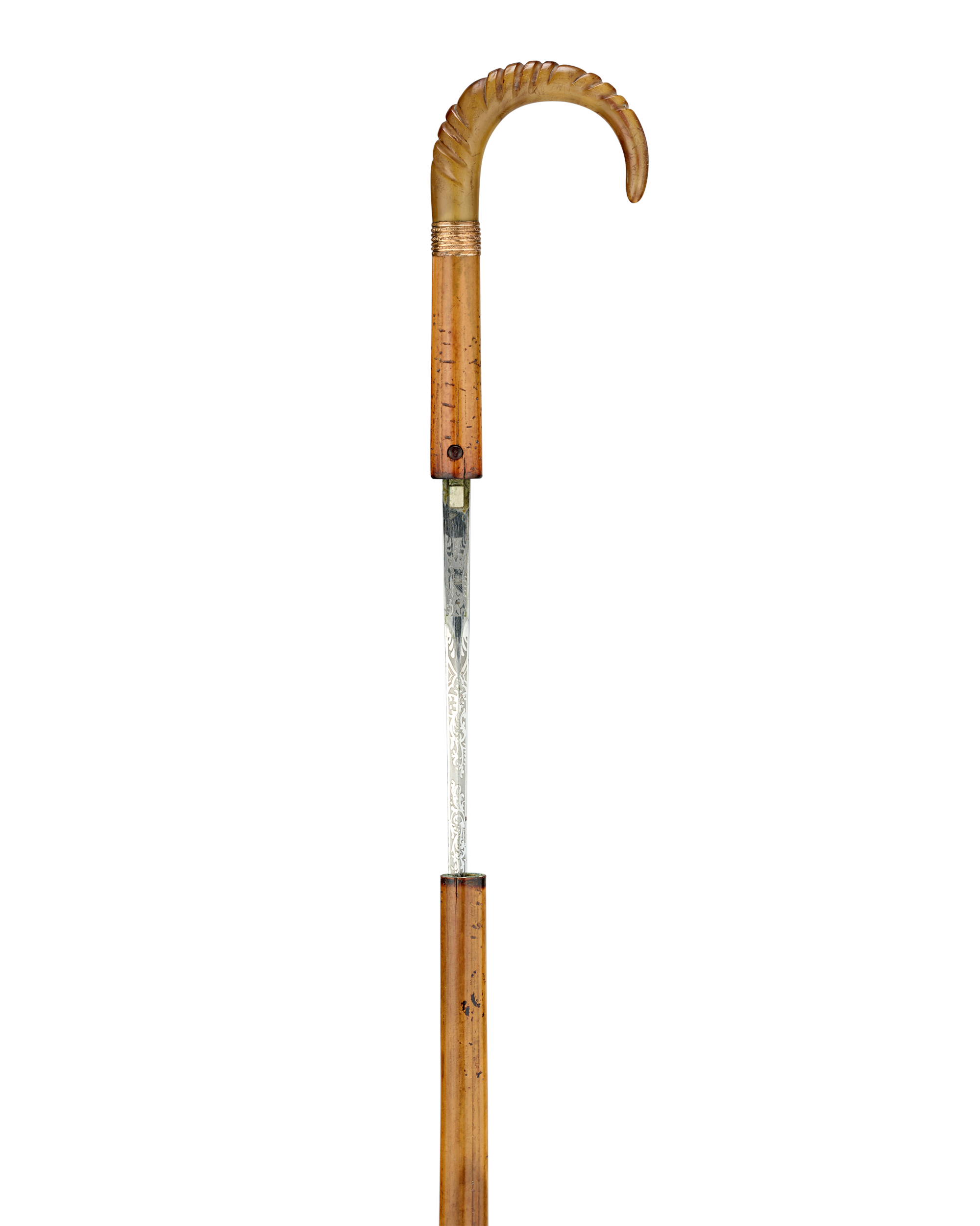 - Concealed within the blond wood shaft is a sharp and dangerous blade