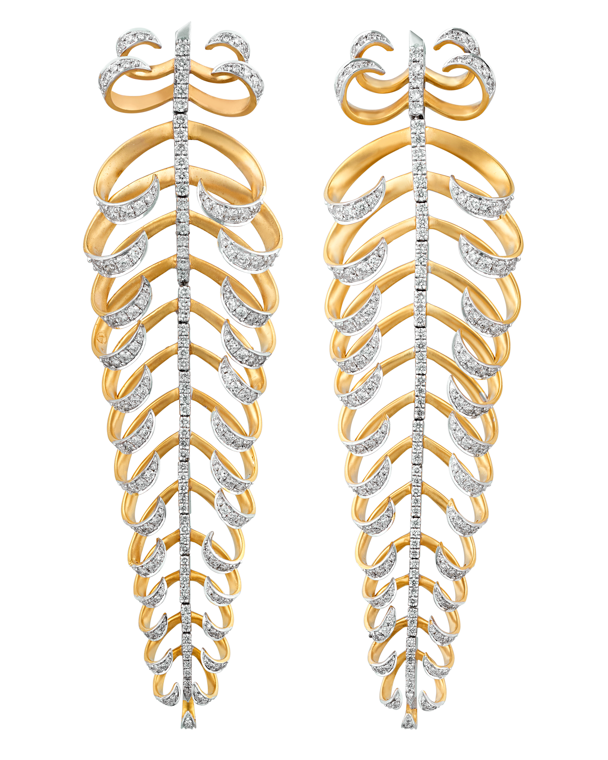 - The gold structures support a dazzling array of white diamonds, totaling 4.19 carats