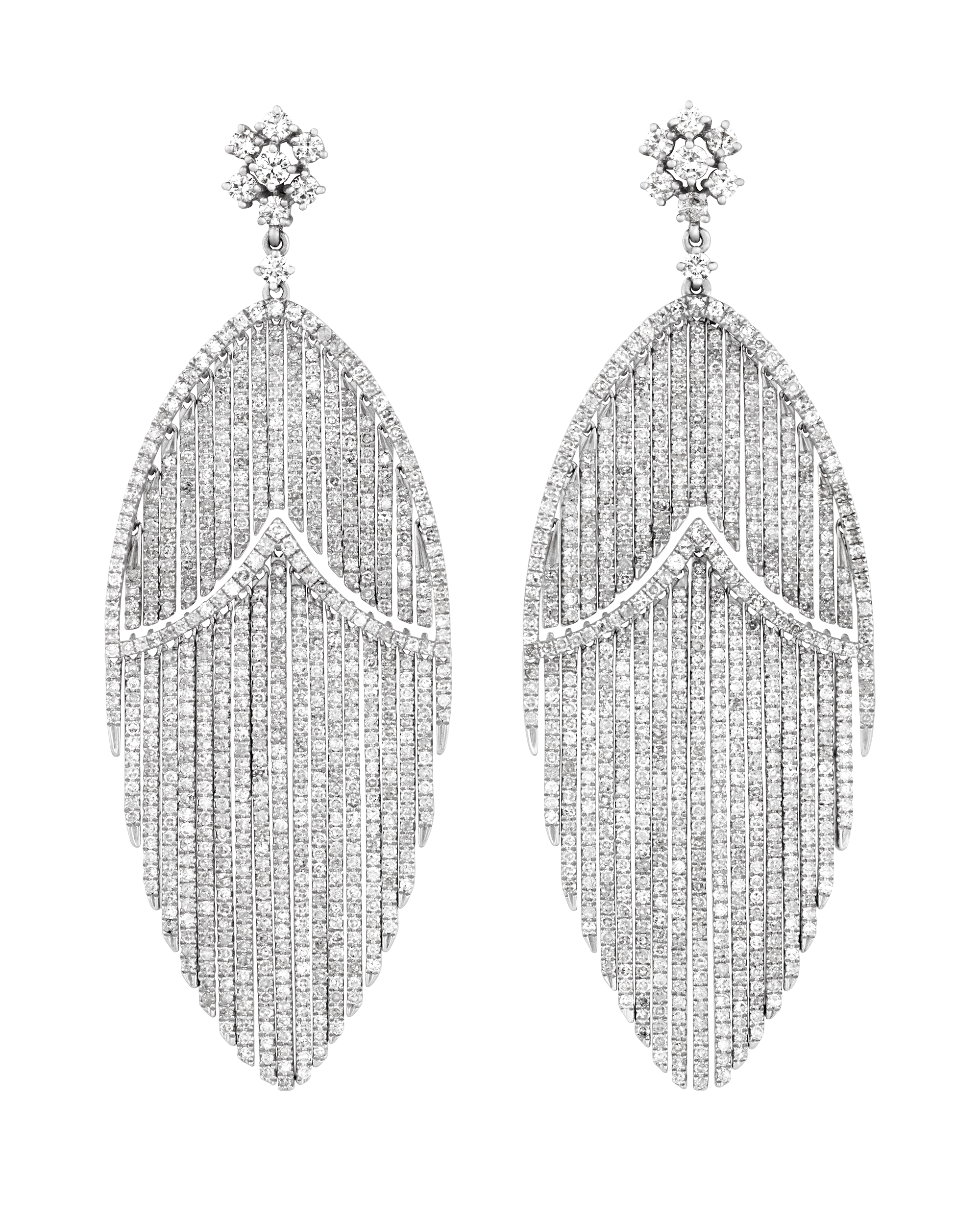- These exquisite dangling earrings showcase a striking fringe of diamonds totaling 5.74 carats
