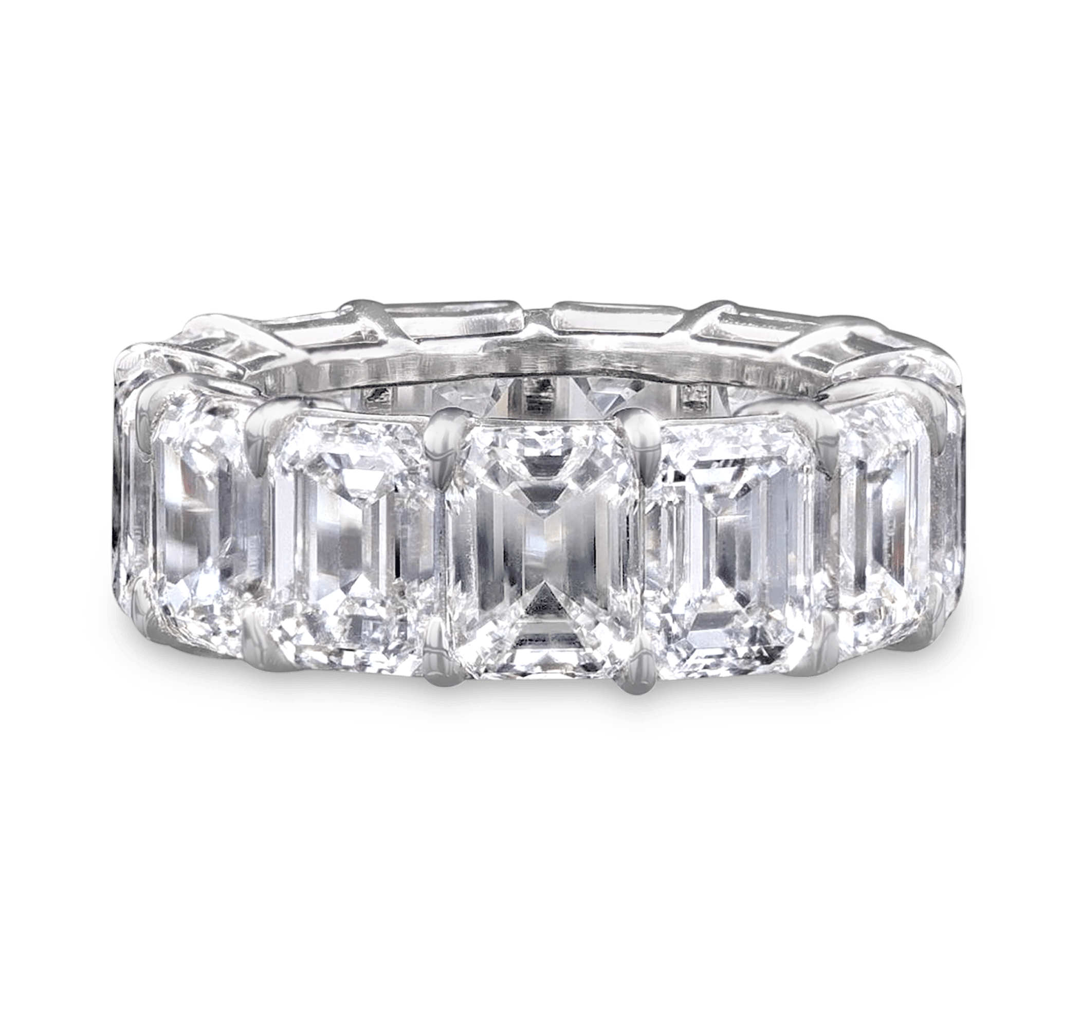 - This exquisite eternity band showcases thirteen emerald cut diamonds totaling 19.57 carats