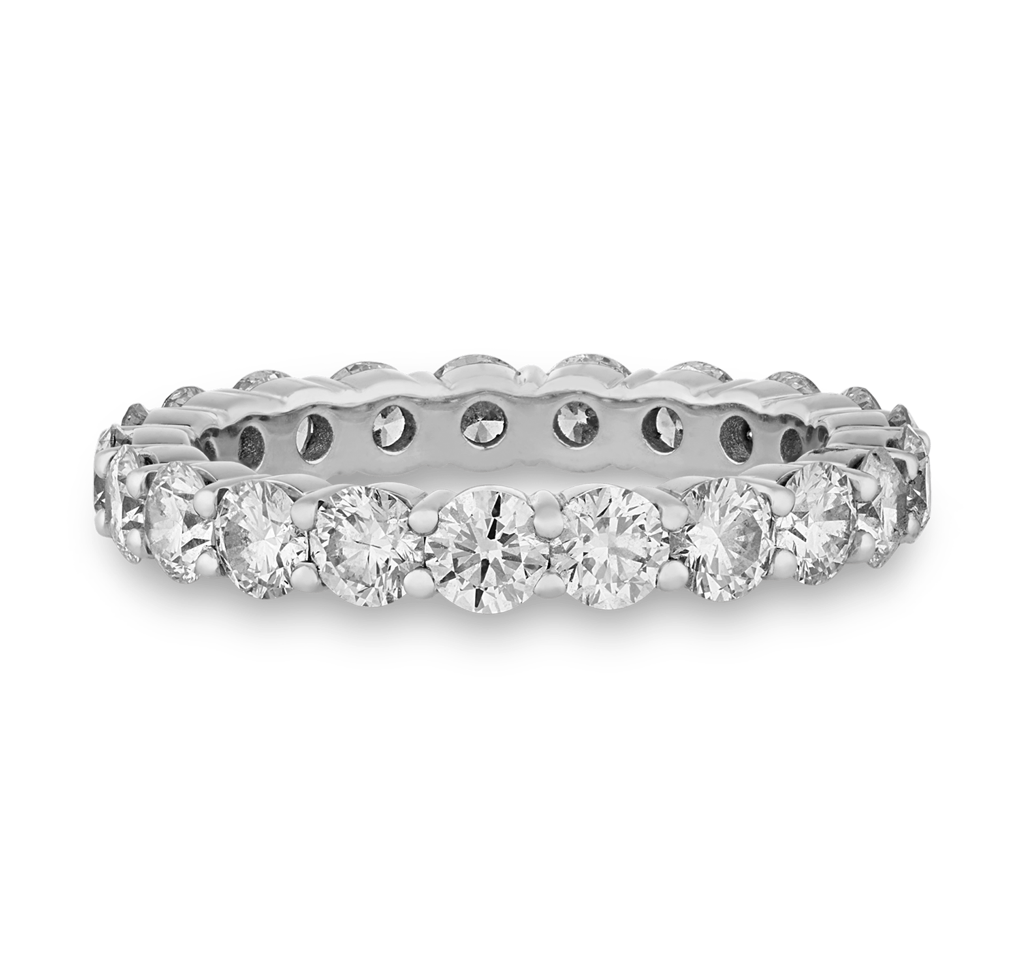 - This classic eternity band features 21 round white diamonds, totaling 2.50 carats