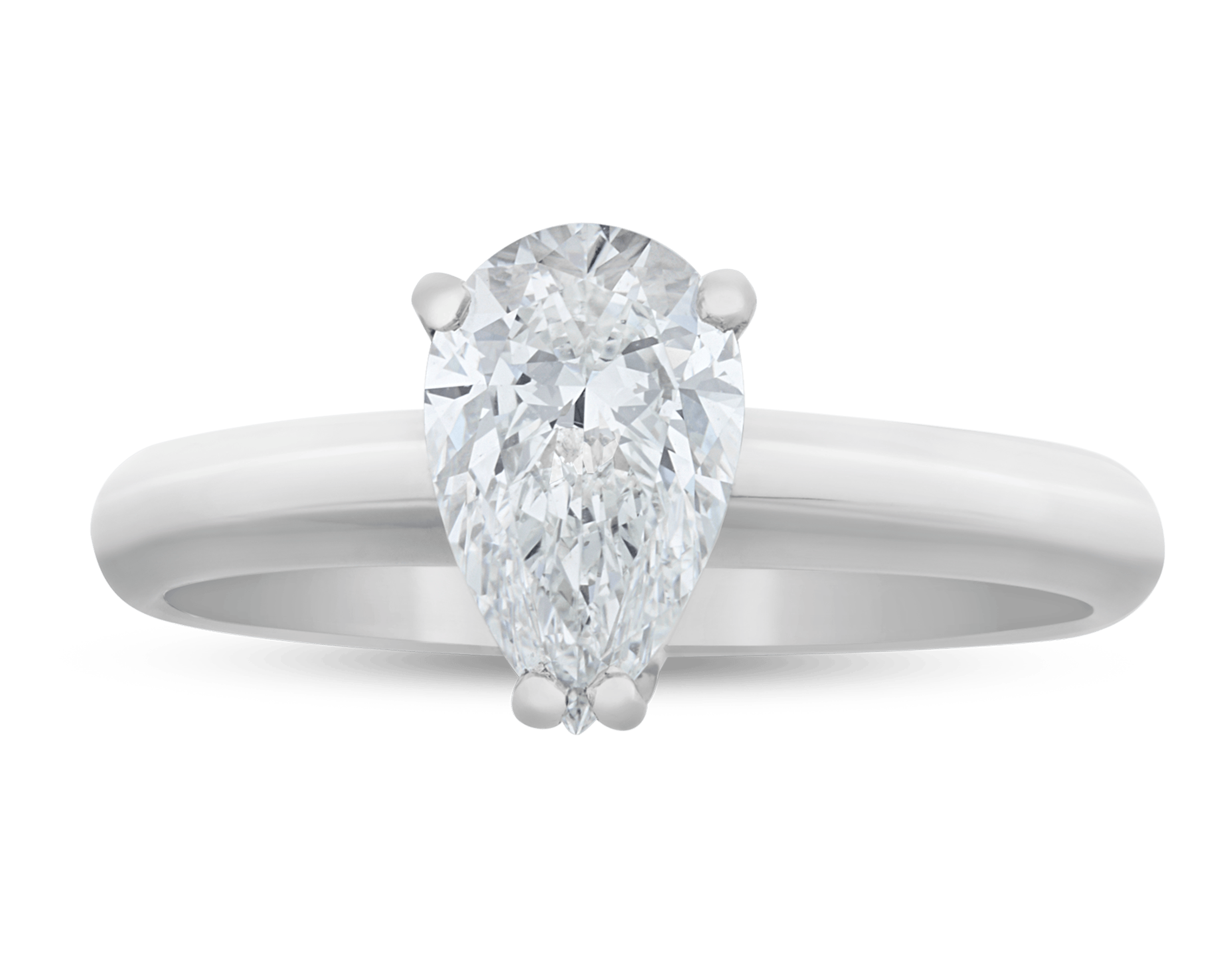 - This solitaire ring showcases an exceptional 1.01-carat pear cut diamond
