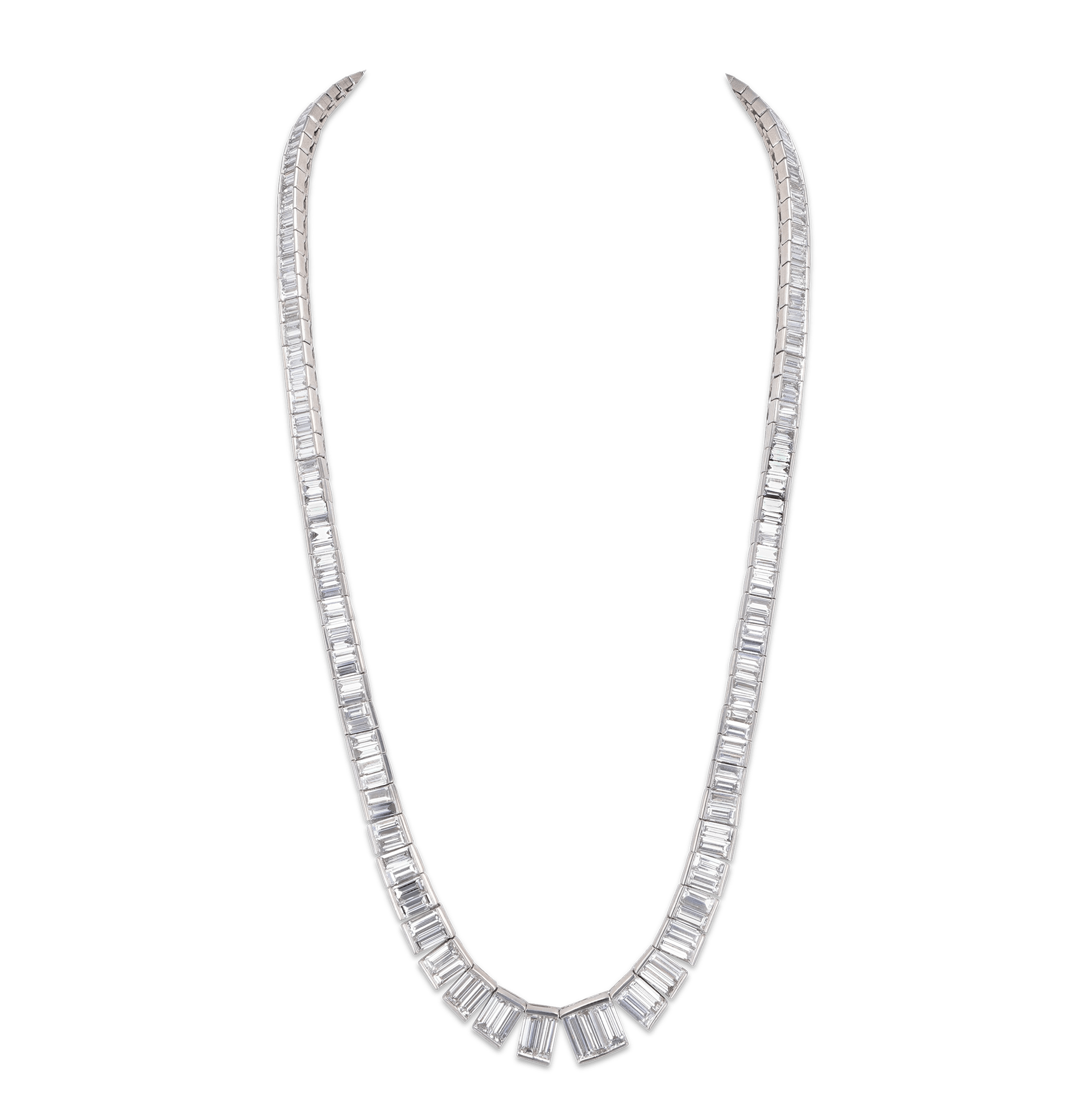 - This exceptional rivière necklace displays 26.75 carats of graduated baguette cut diamonds