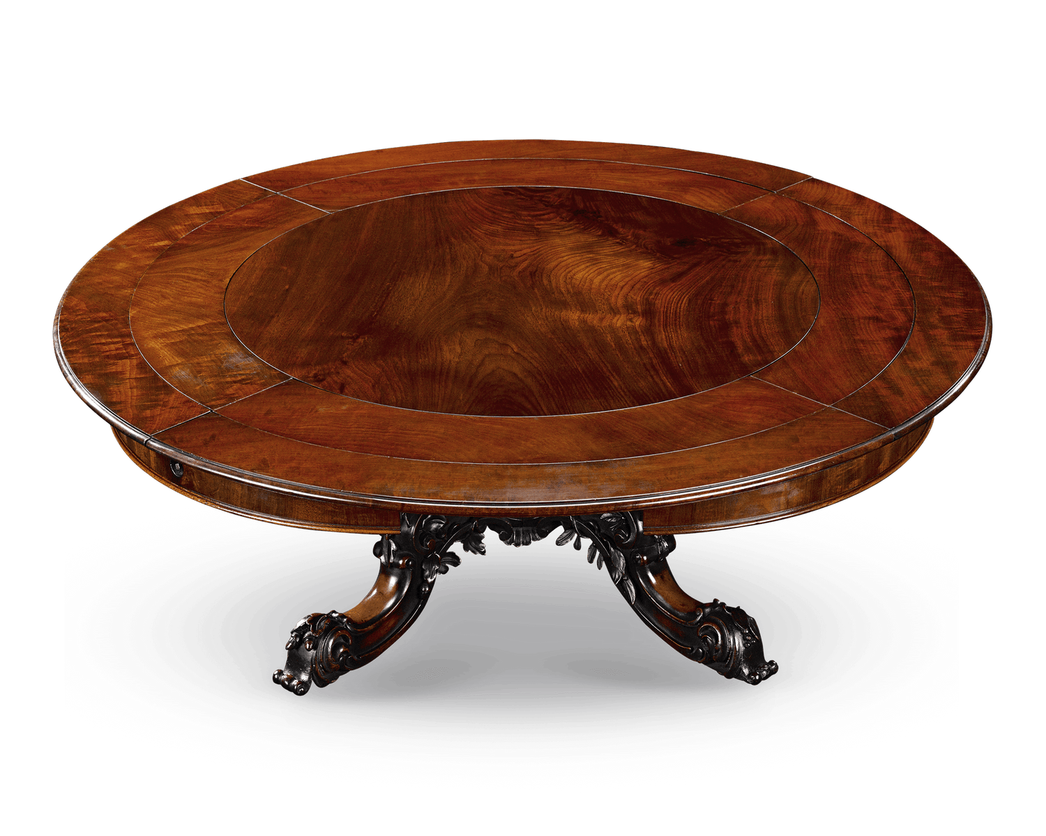 Pieces such as this that were made specifically for this seminal exhibition are among the most valuable to be found. Before the age of modern advertising, international exhibitions were the sole opportunity for craftsmen and inventors to market their wares to a mass audience. Thus, each piece was masterfully designed and painstakingly crafted down to the smallest detail, in the hopes that it would make a lasting impression on critics and attendees alike. Without question, this expanding table displays the finest craftsmanship and artistry, and is an unparalleled specimen of English ingenuity and original design.