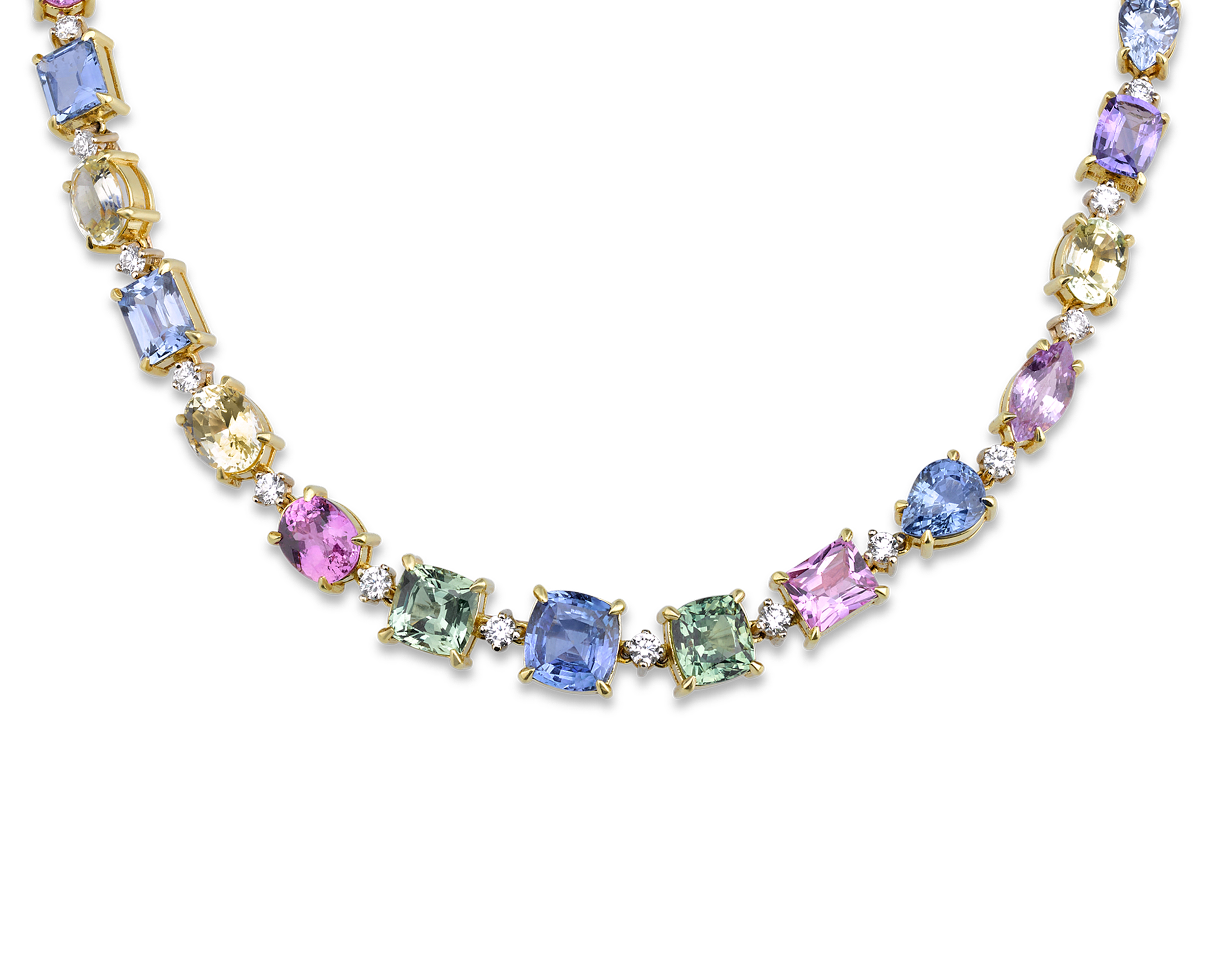 - This necklace reflects the remarkable range of color for which sapphires are prized