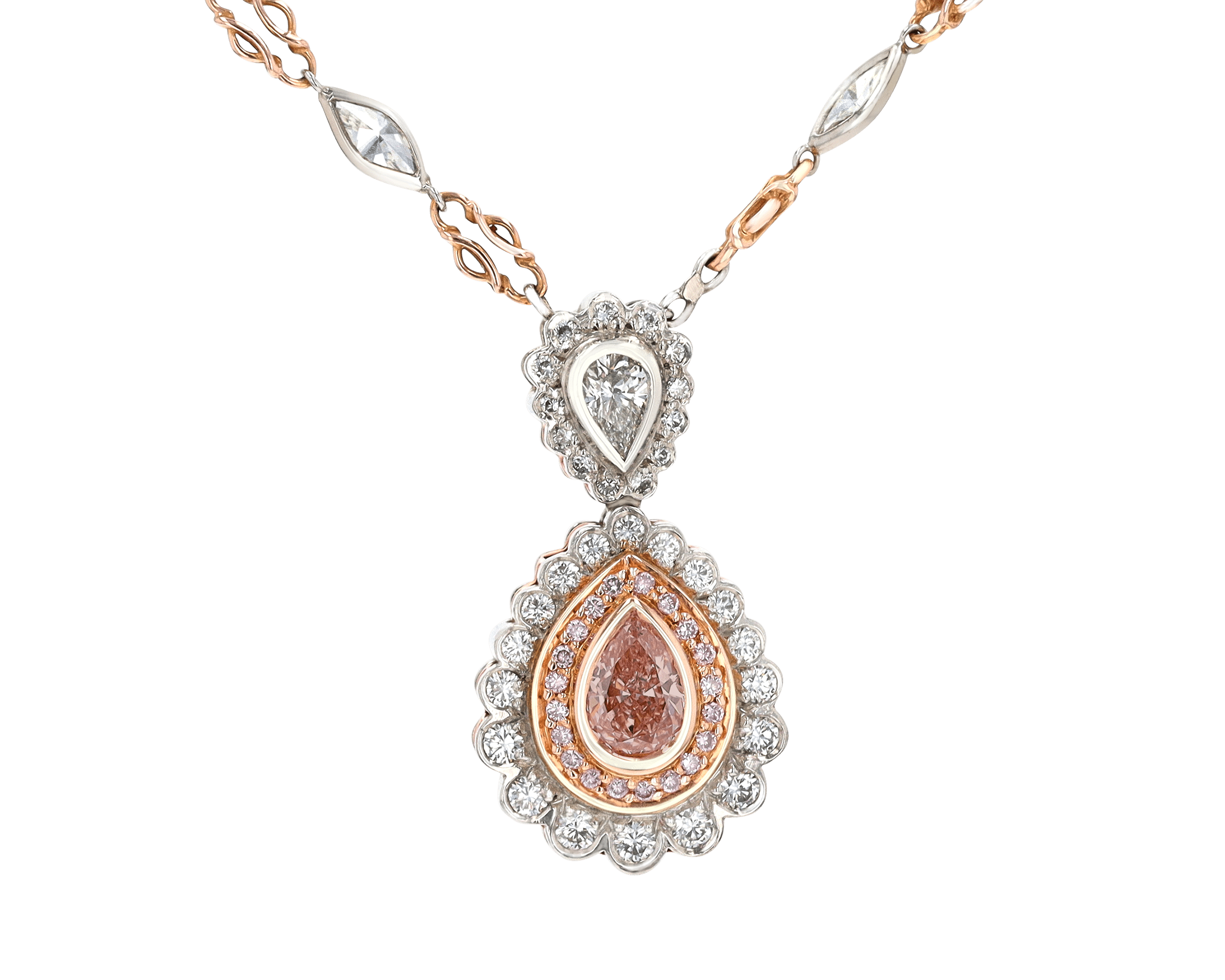 Learn MoreFancy Orangey-Pink Diamond Necklace, 0.84 Carat