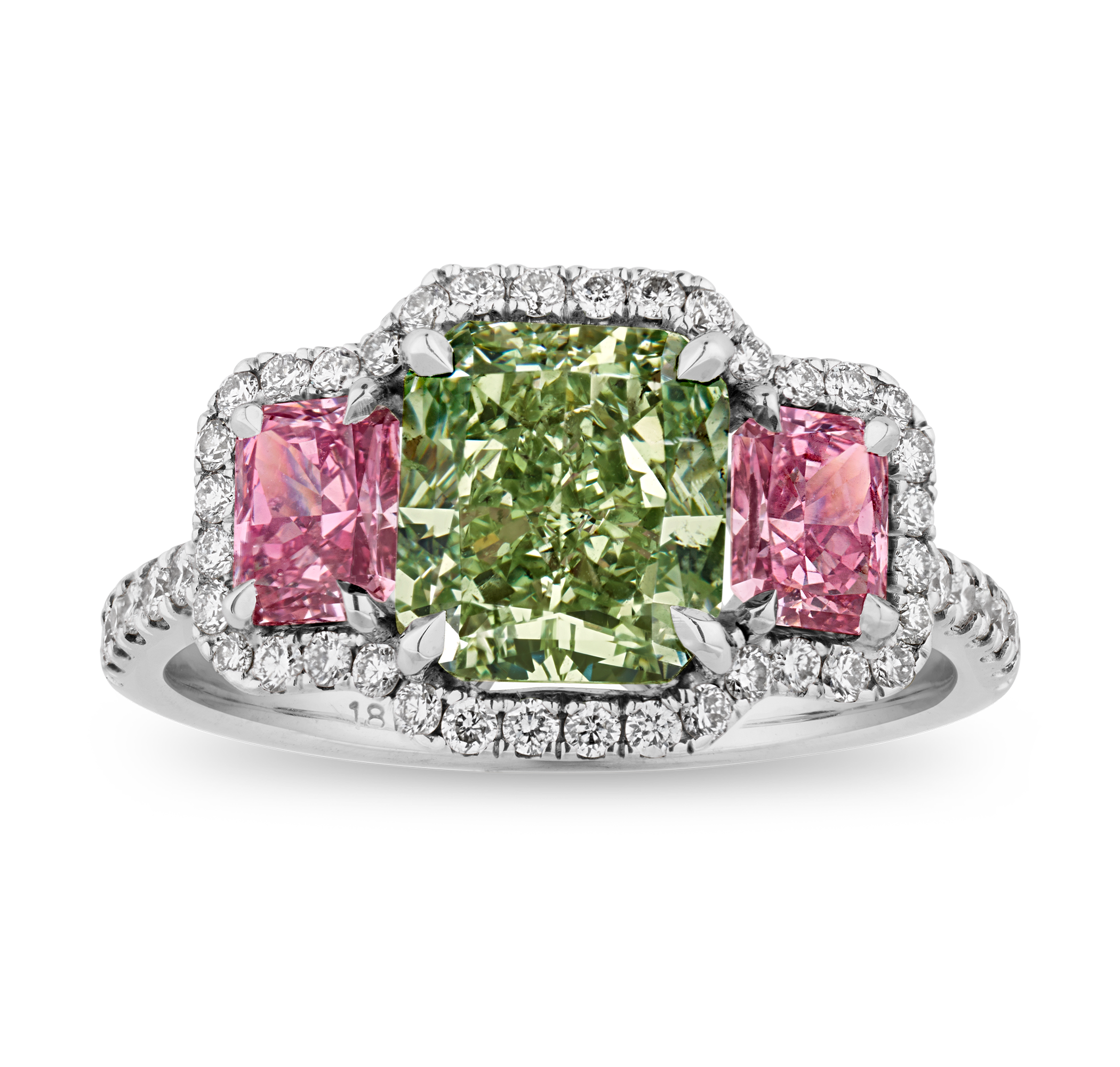 - This ring features a 2.01-carat Fancy Vivid Green diamond of exceptional saturation