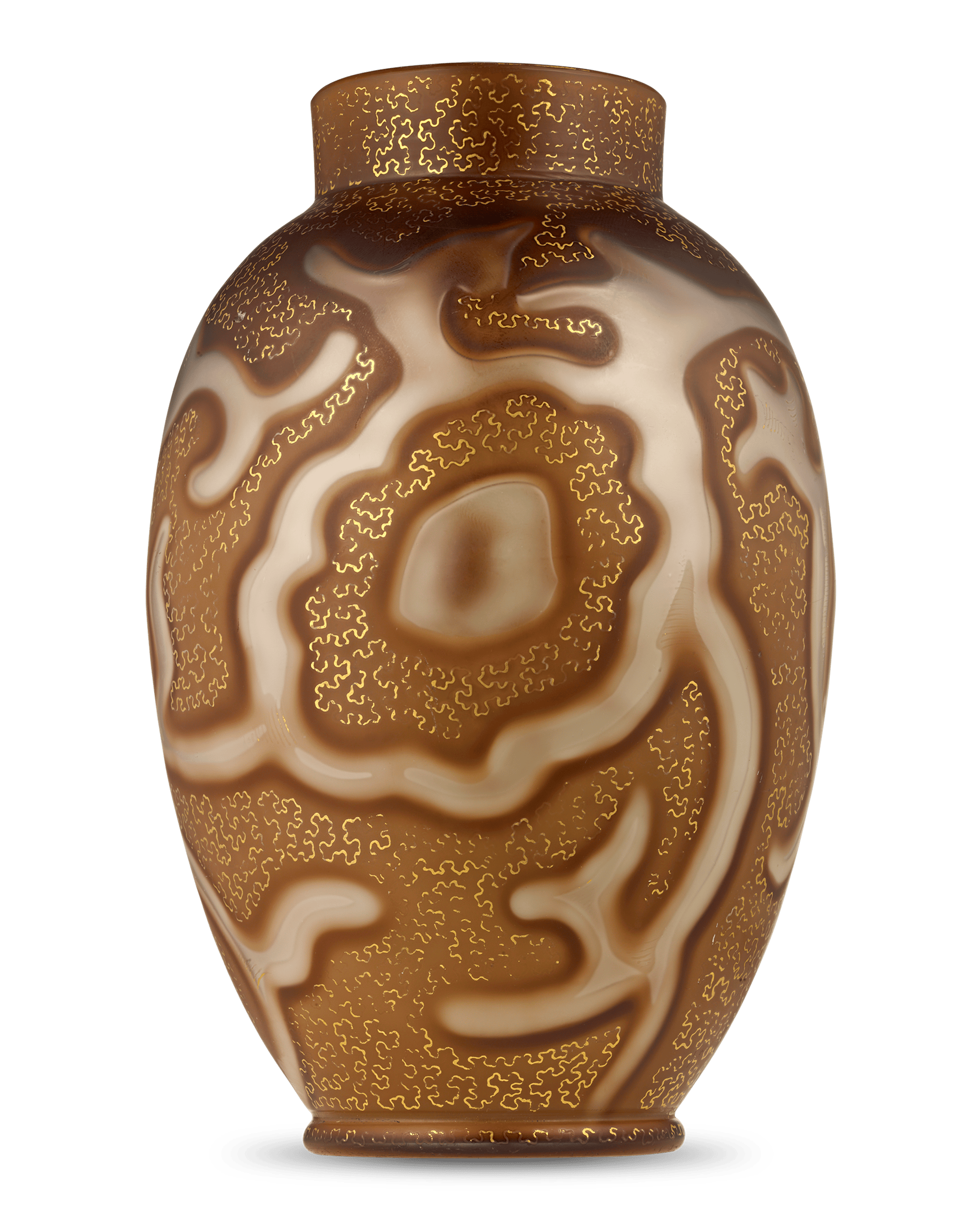 - Iridescent mauve and golden swirls adorn this rare vase