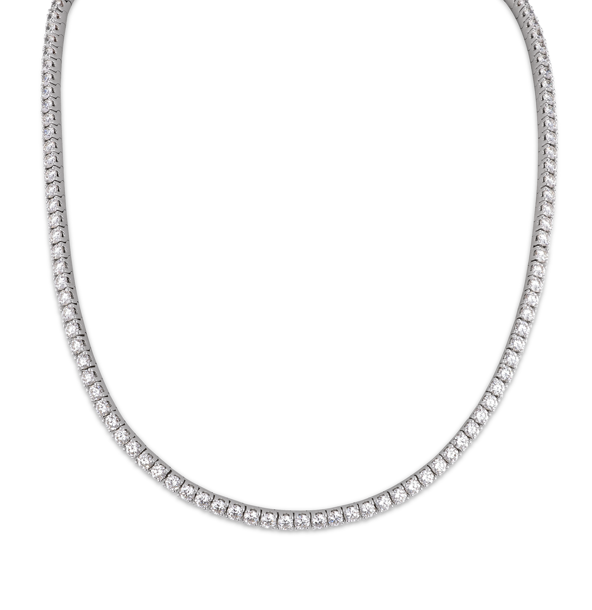 - This exquisite line necklace shimmers with 12.40 carats of diamonds
