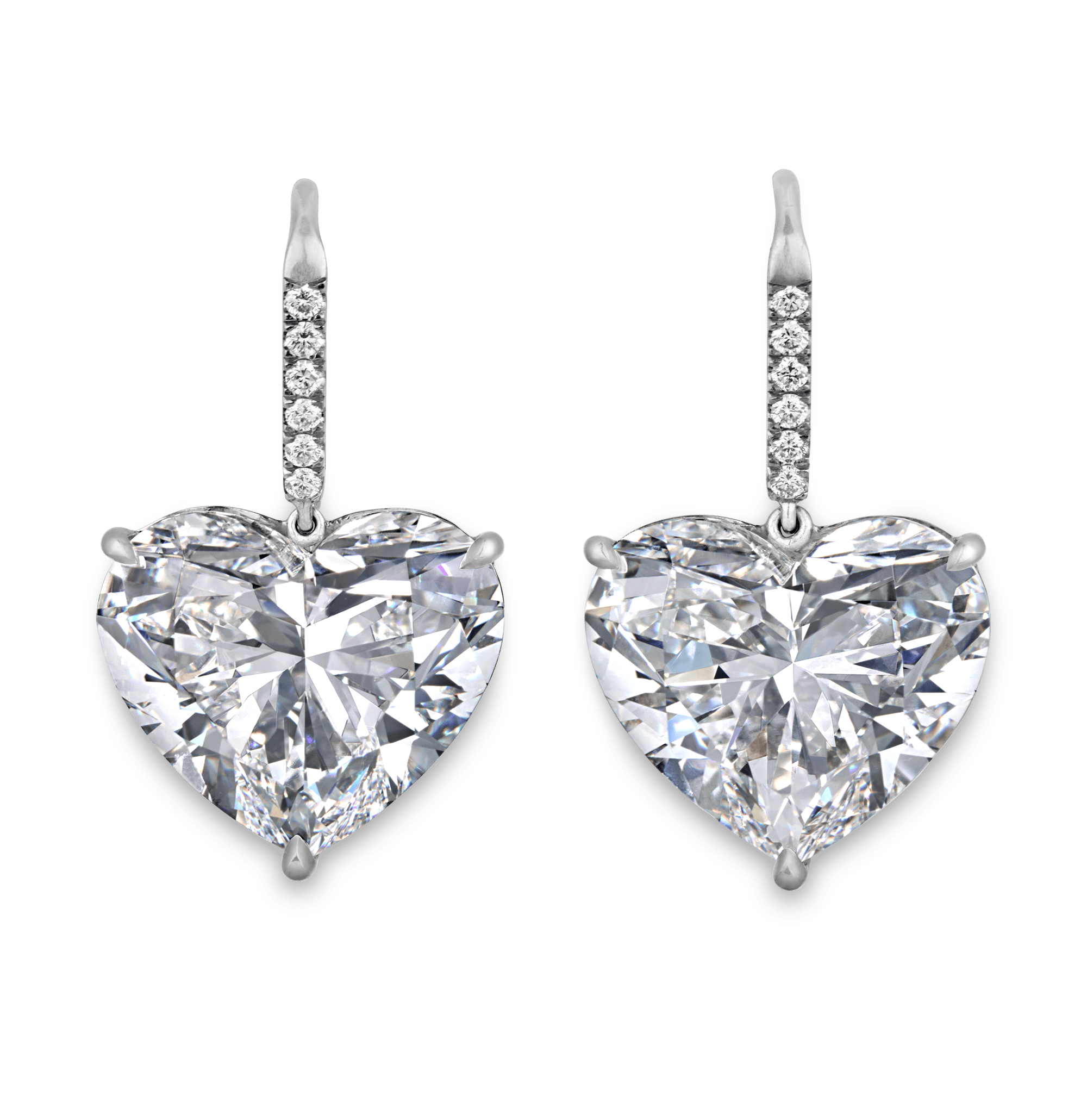 The heart shape, among the most technically demanding of all diamond cuts, requires impeccable symmetry and exacting craftsmanship to balance light, proportion and contour. Both stones have received Excellent grades for polish and symmetry from the GIA, confirming their flawless execution. To find two Golconda diamonds of this size, purity and precision united in a single pair of earrings is an achievement of almost unimaginable rarity. The total weight of the earrings is 22.23 carats, and they are beautifully set in platinum.