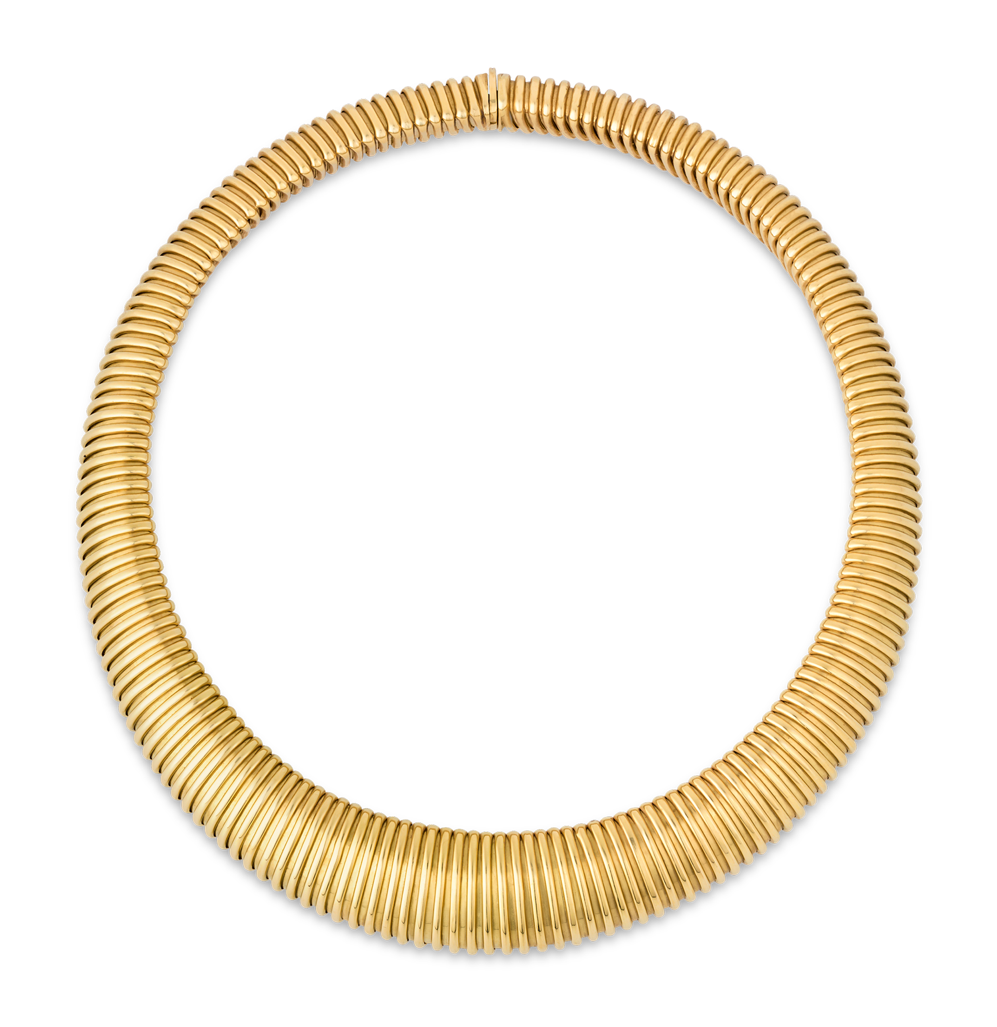 - This striking Italian tubogas necklace showcases exceptional craftsmanship in 18K yellow gold