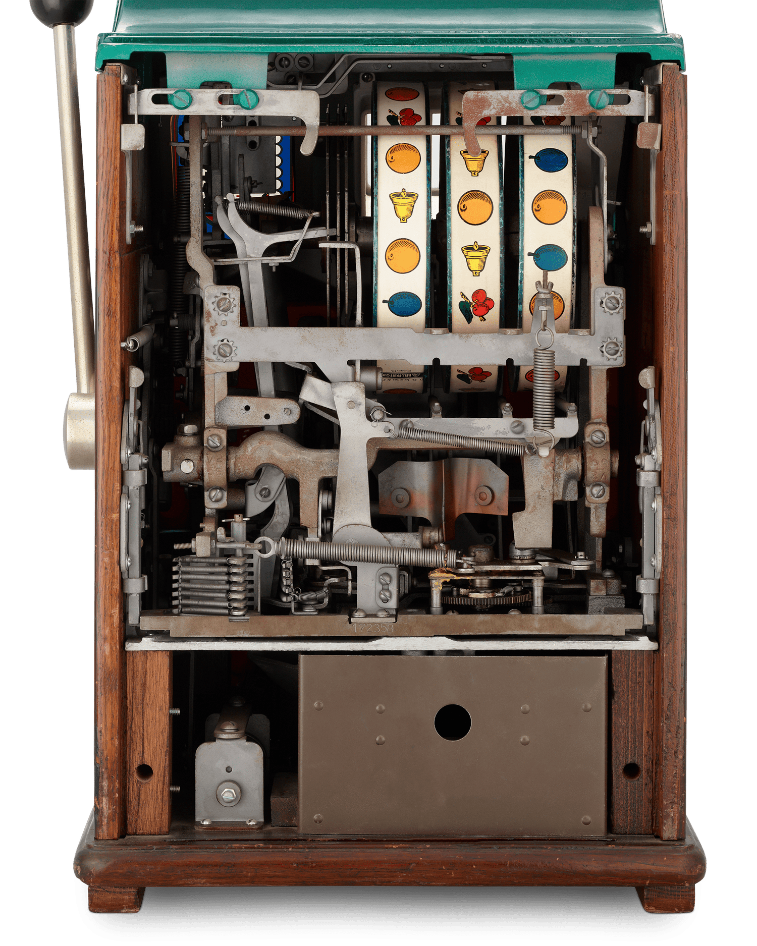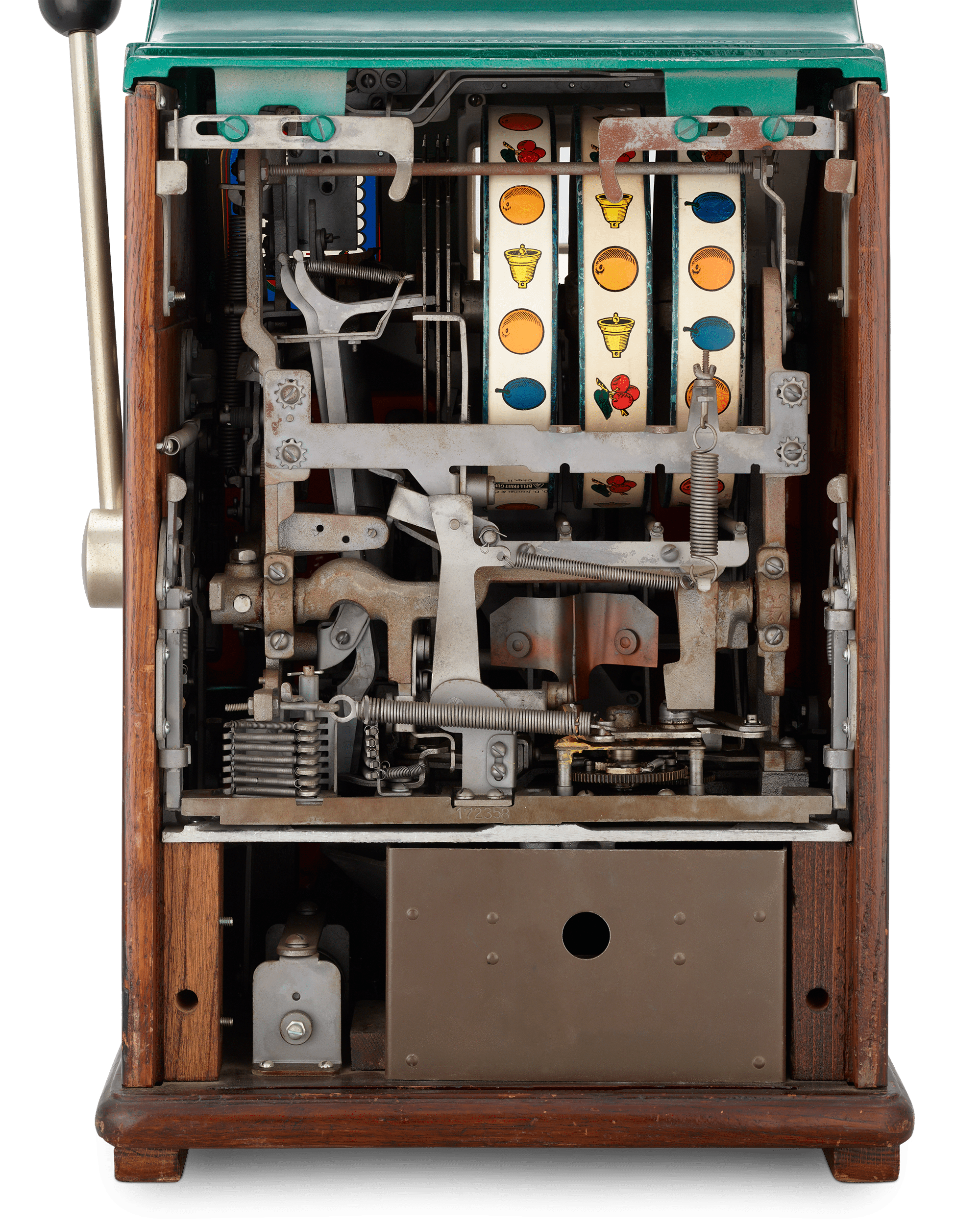 Ode D. Jennings (1874–1953), a brilliant inventor from Kentucky, began his career at Mills Novelty Co., where he rose to manage the 1904 World’s Fair Spectatorium—an Edison-lit arcade showcasing hundreds of slot machines. Jennings went on to found his own firm in 1906, which evolved into O.D. Jennings & Co. He held multiple patents, including innovations that eliminated coin jams and rejected undersized slugs. By the 1960s, Jennings machines accounted for 45% of U.S. slot machine sales, cementing the firm’s legacy as a powerhouse in American mechanical ingenuity.