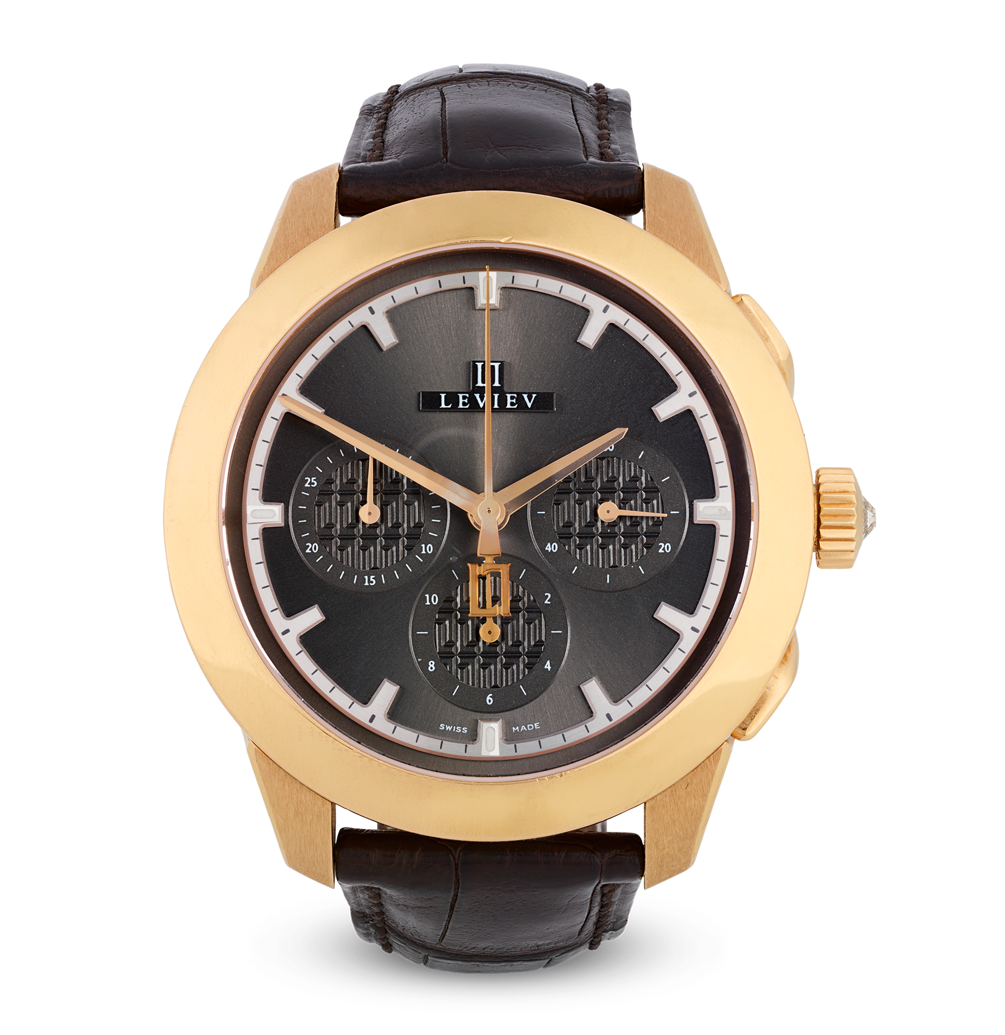 - This flyback chronograph wristwatch was crafted by the esteemed jewelry house Leviev