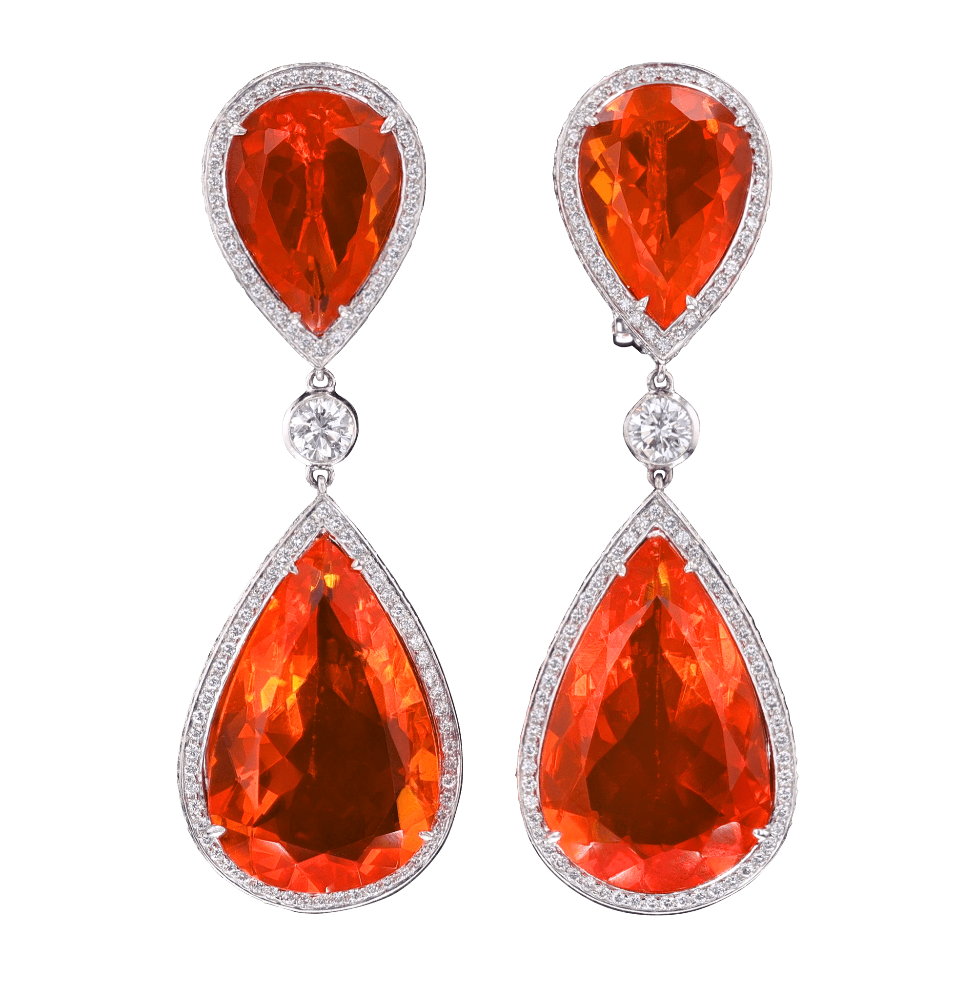 - This pair of earrings features four Mexican fire opals totaling approximately 43.64 carats