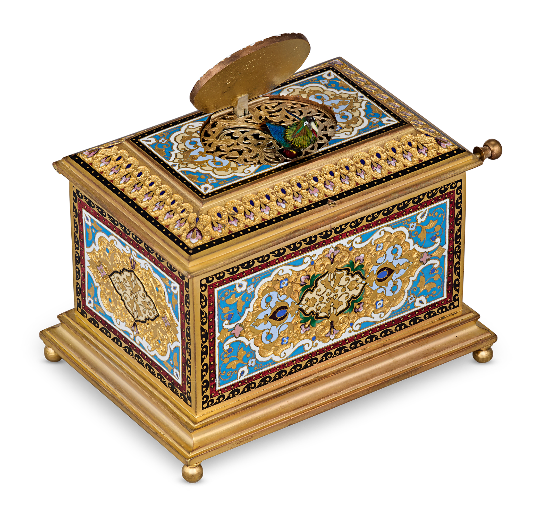 - This champlevé enameled bronze bird box marries decorative artistry and mechanical ingenuity