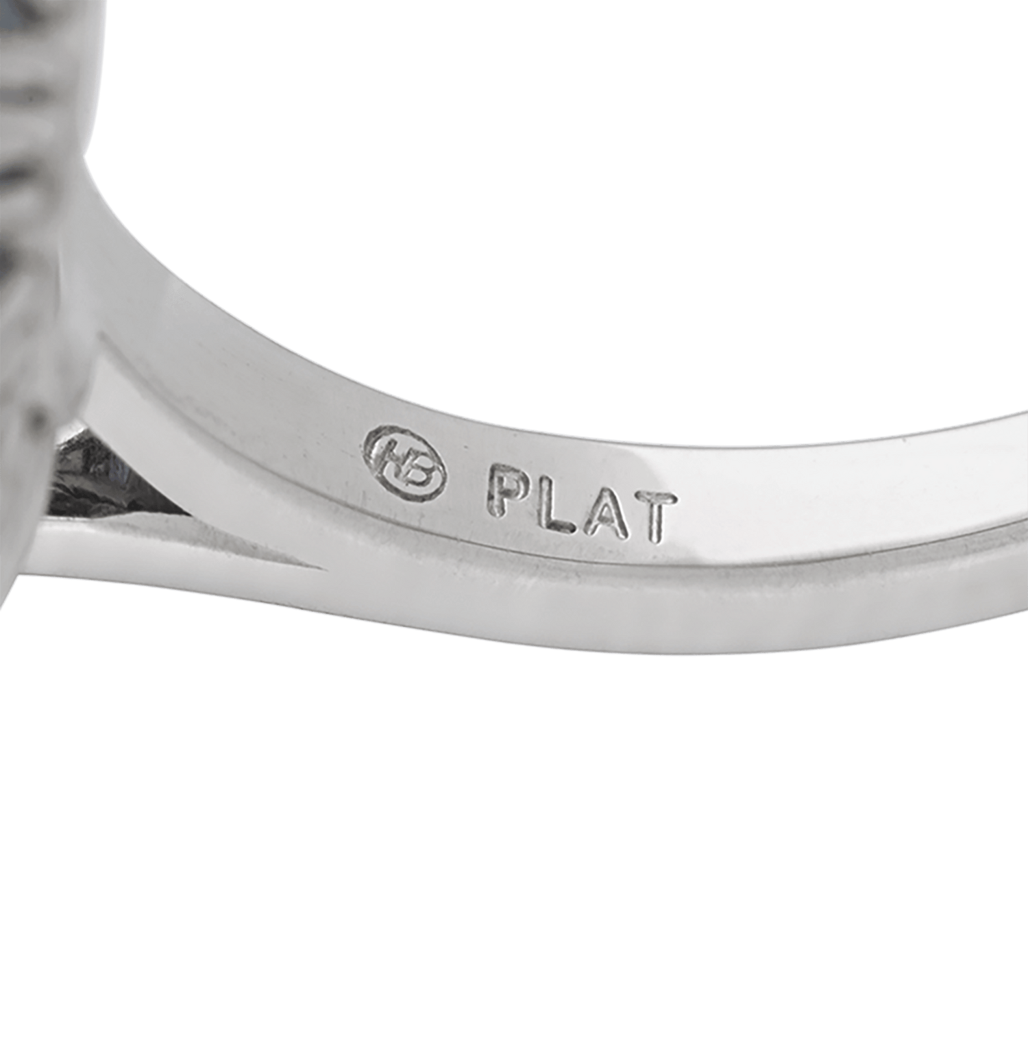 - Six oval diamonds totaling 1.96 carats and a platinum setting complete the design