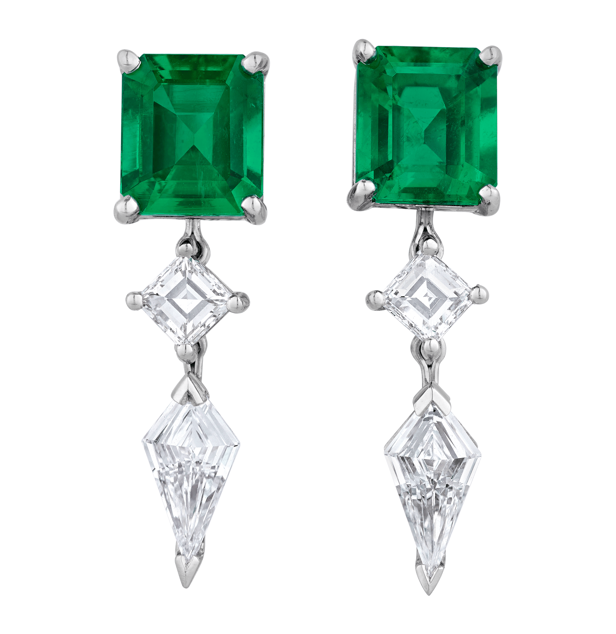 - These elegant Oscar Heyman earrings feature two verdant Colombian emeralds, totaling 2.61 cts