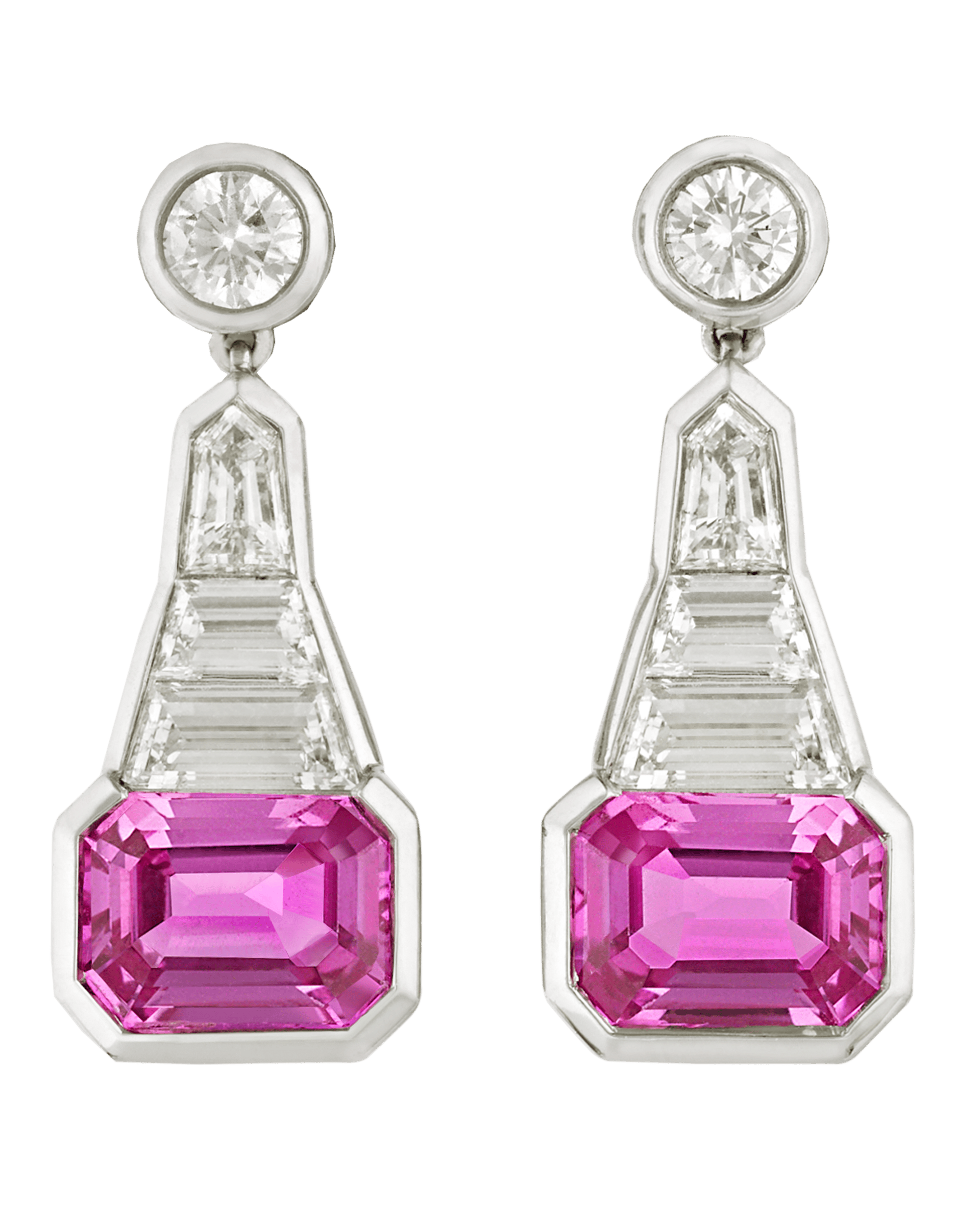 - Two highly coveted pink sapphires dazzle in these eye-catching dangle earrings