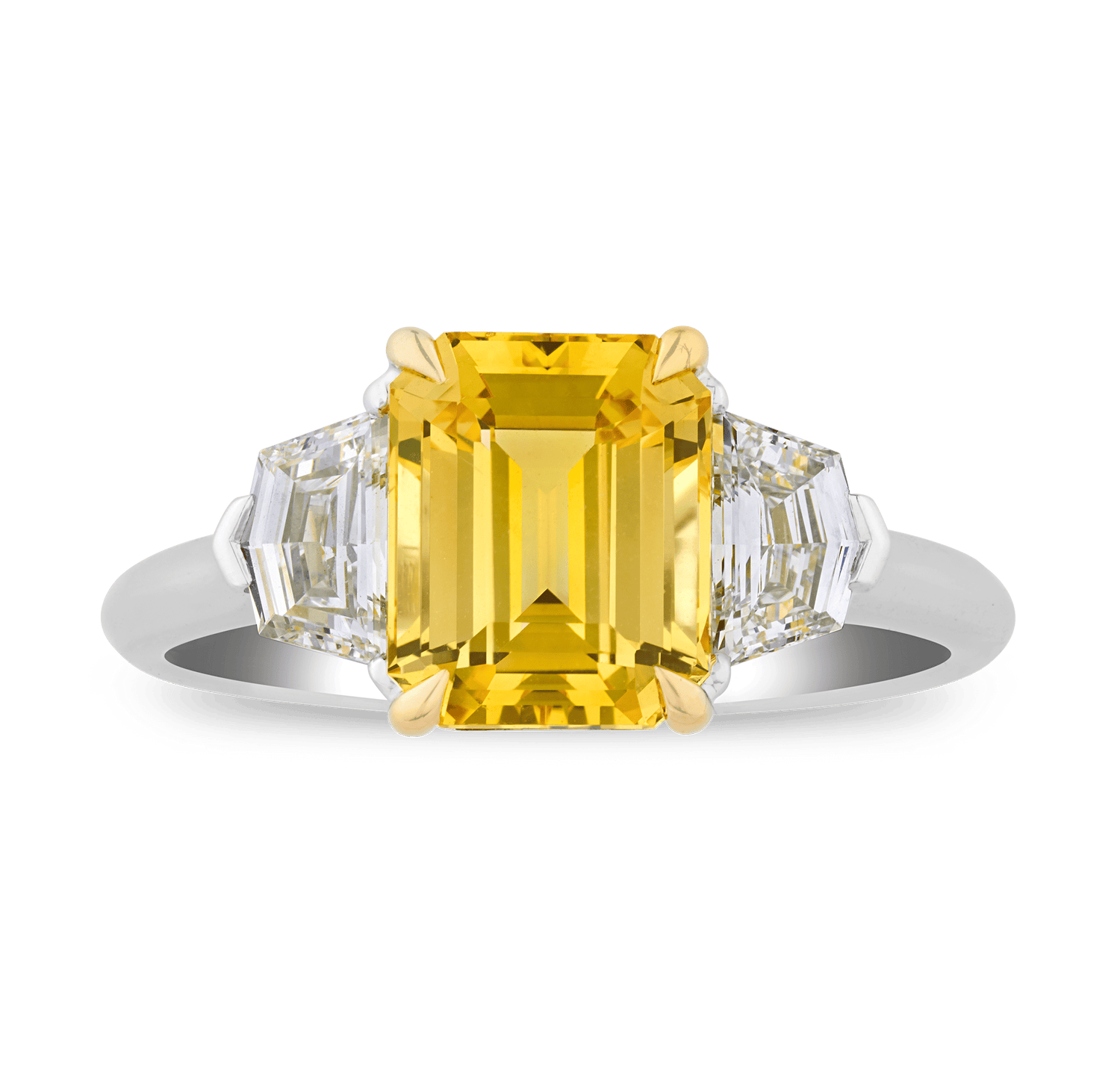 - This classic ring showcases a fancy yellow sapphire totaling 3.20 carats