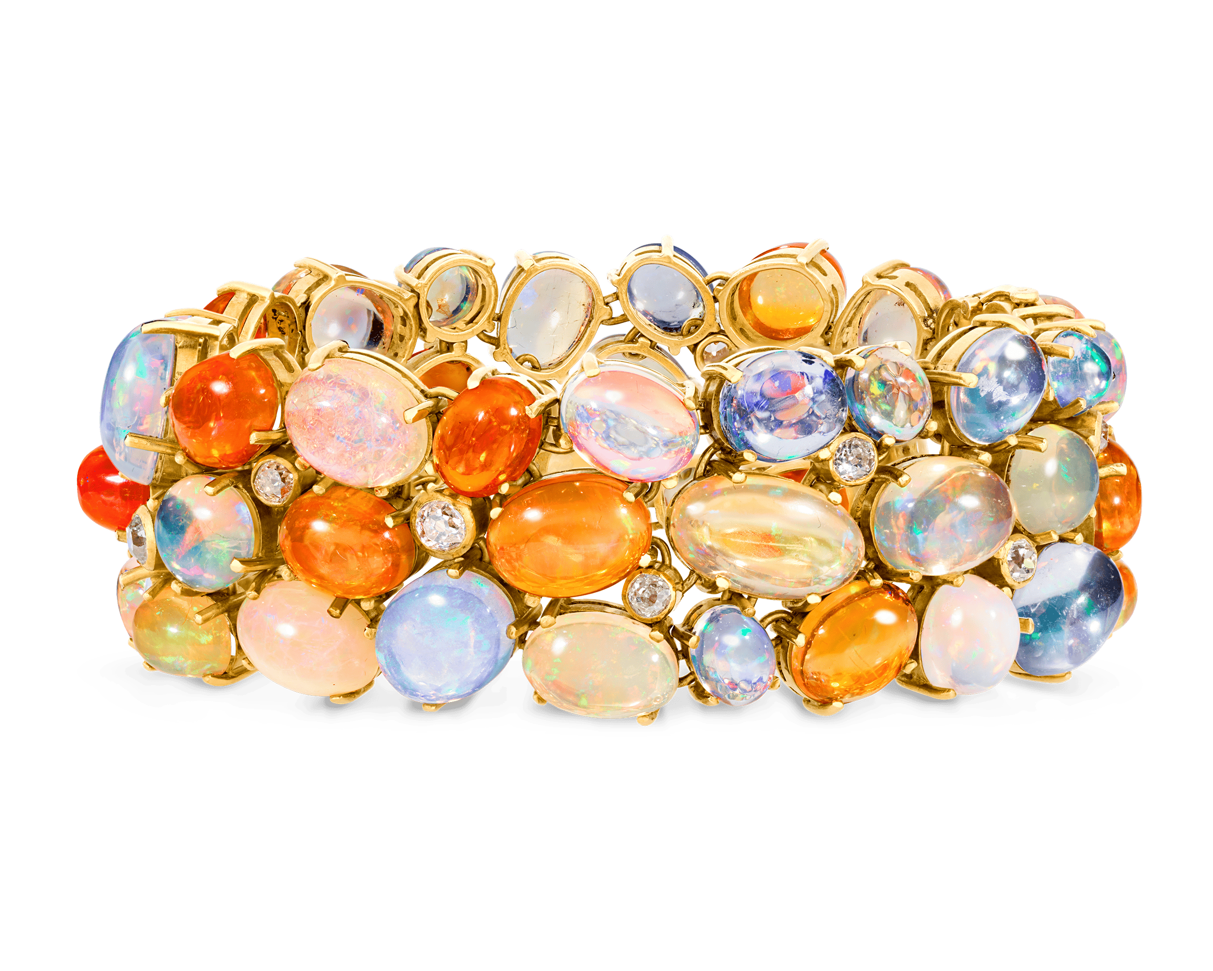 This exceptional bracelet exemplifies the house’s brilliance, composed of oval cabochon opals of the highest quality, their vibrant hues. . .