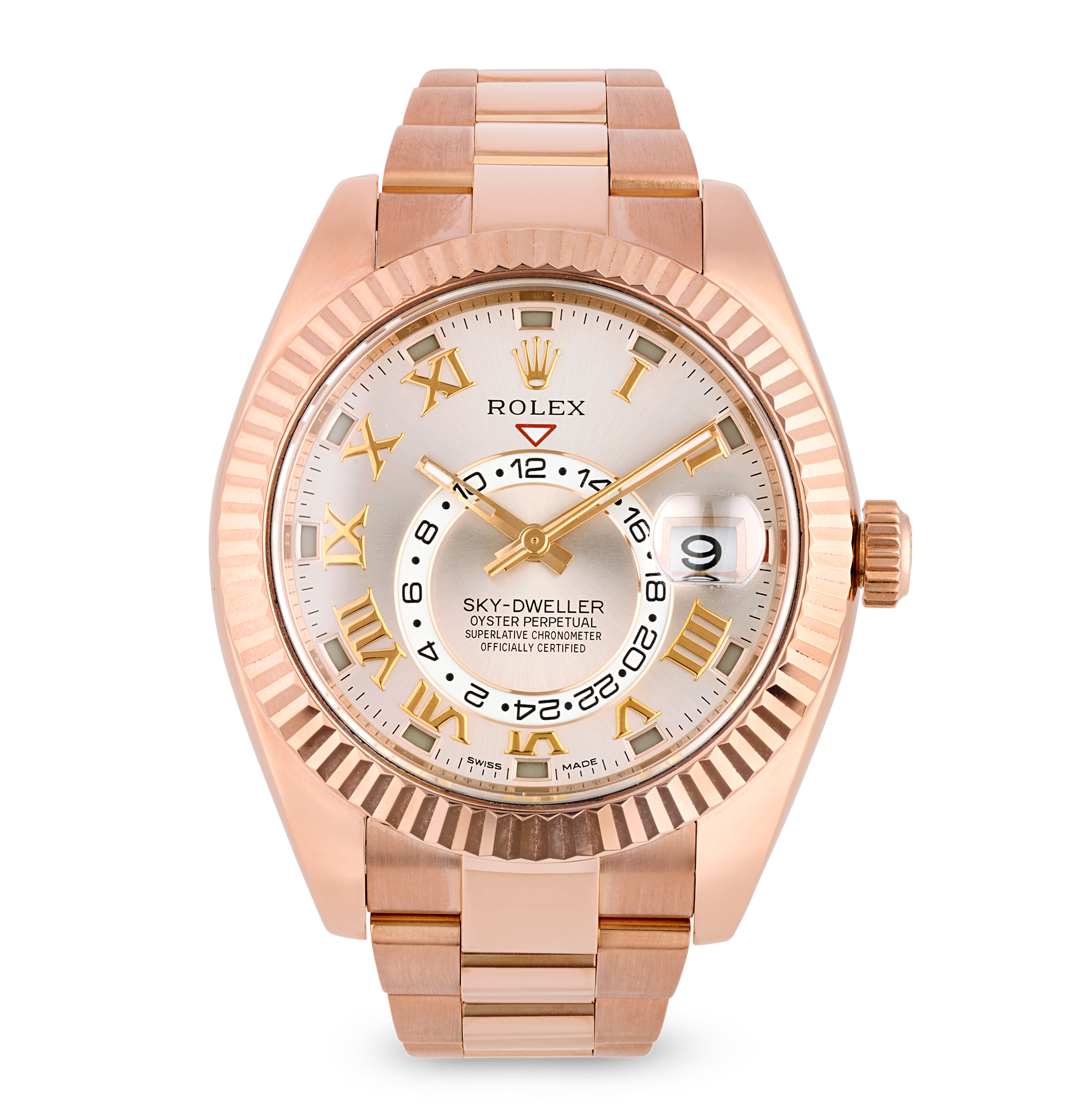- This Rolex Sky-Dweller is presented in 18K Everose Gold with a rare Sundust sunburst dial