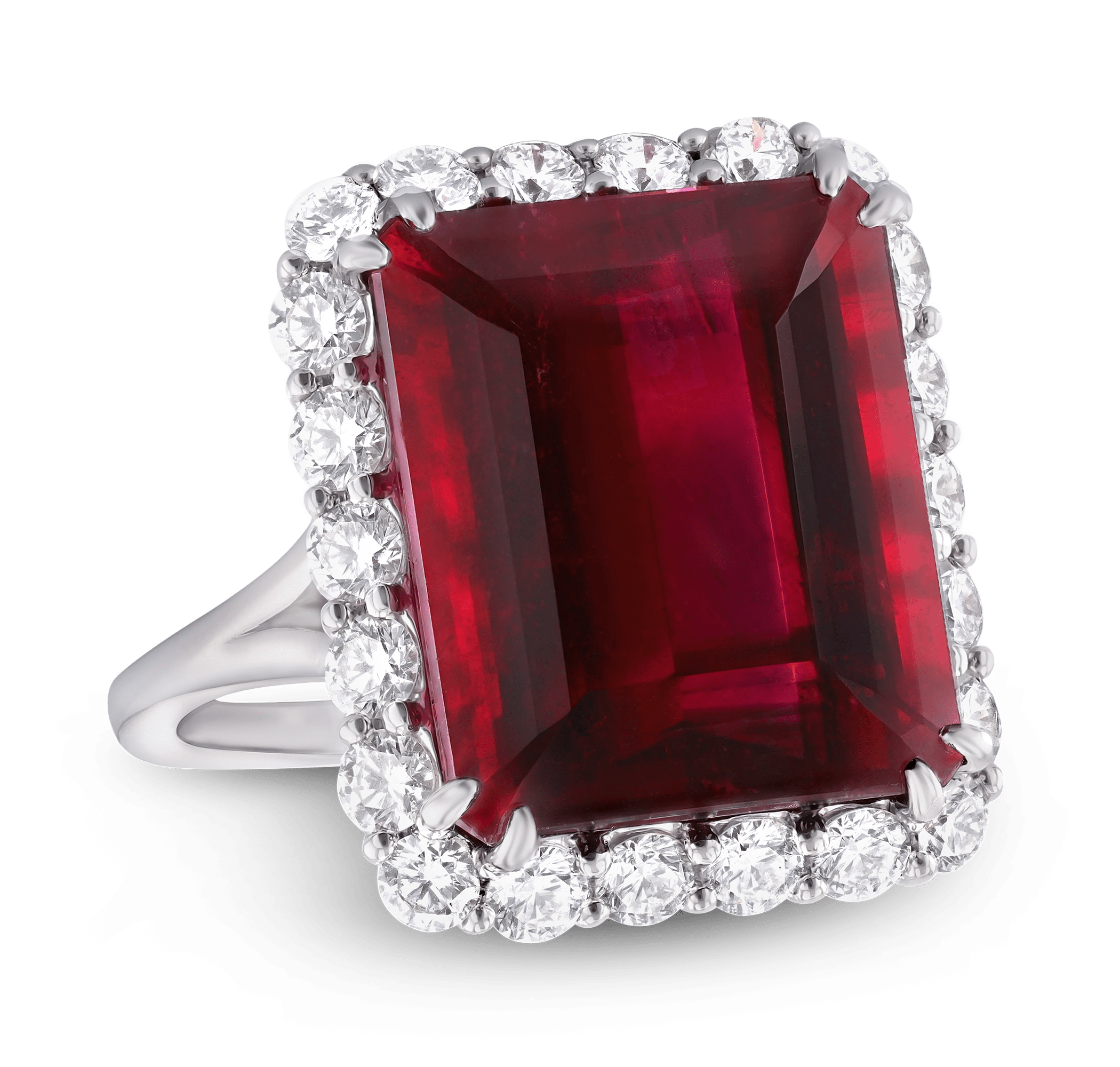 - The 19.78-carat rubellite at the center of this ring displays the covetable hue