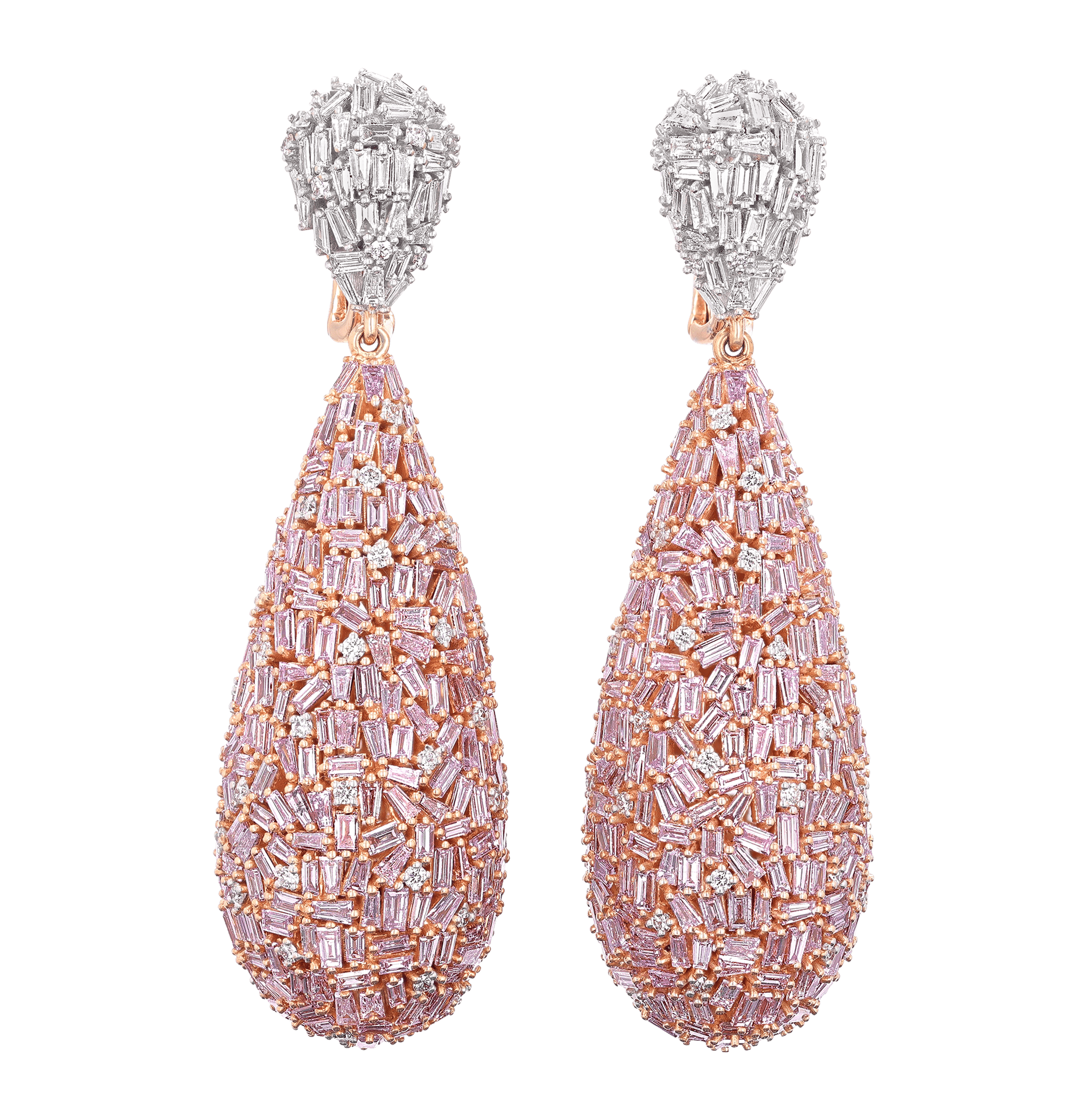 - These exquisite drop earrings showcase 14.75 carats of fancy purplish-pink diamonds