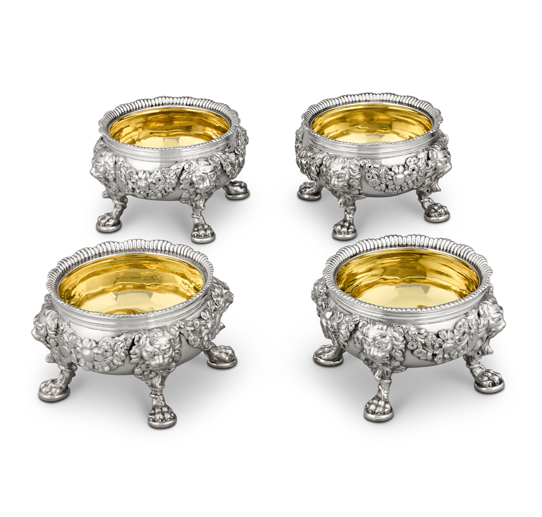 - Each open salt is a stunning example of de Lamerie’s exceptional skill with lion crests and florals