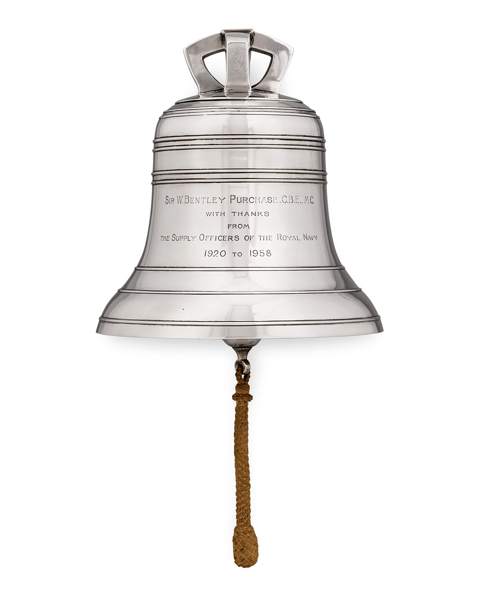 - This silver ship’s bell was presented to Sir William Bentley Purchase for his wartime service