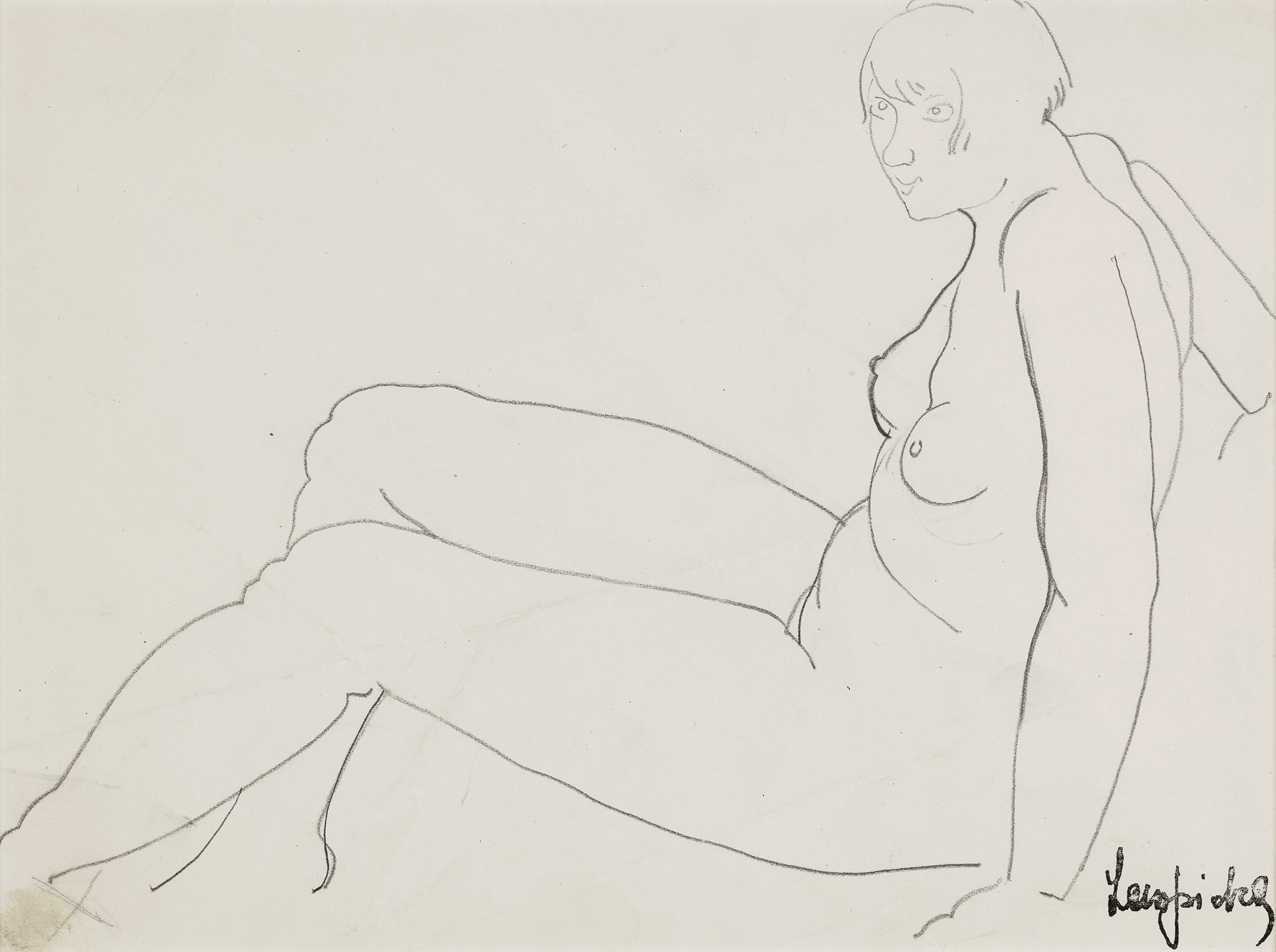 With confident and fluid lines, Lempicka beautifully portrays a woman with the classic 1920s flapper hairstyle in a languid pose. This drawing is unique for its facial details, such as the wide eyes and slightly upturned mouth, which Lempicka most often left out of her fast-paced drawings. Her talent seamlessly merges various modern art movements and design principles, capturing the streamlined sophistication of modern architecture with the more avant-garde nature of her fellow painters. This anonymous nude offers a rare glimpse into the acclaimed artist's inner world and witness her fascinating artistic process.