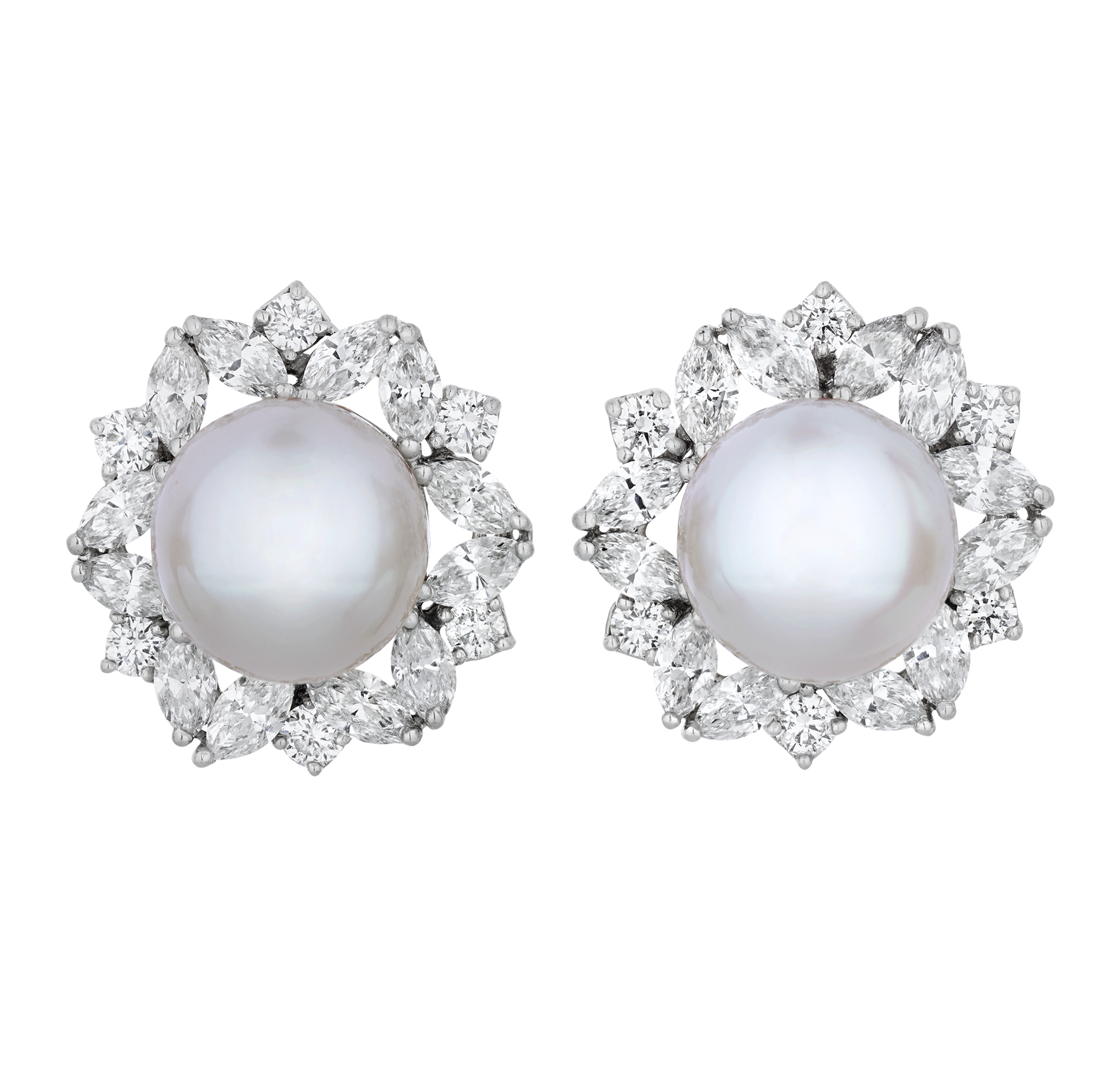 - The pearls are accented by a sparkling halo of diamonds totaling 5.91 carats