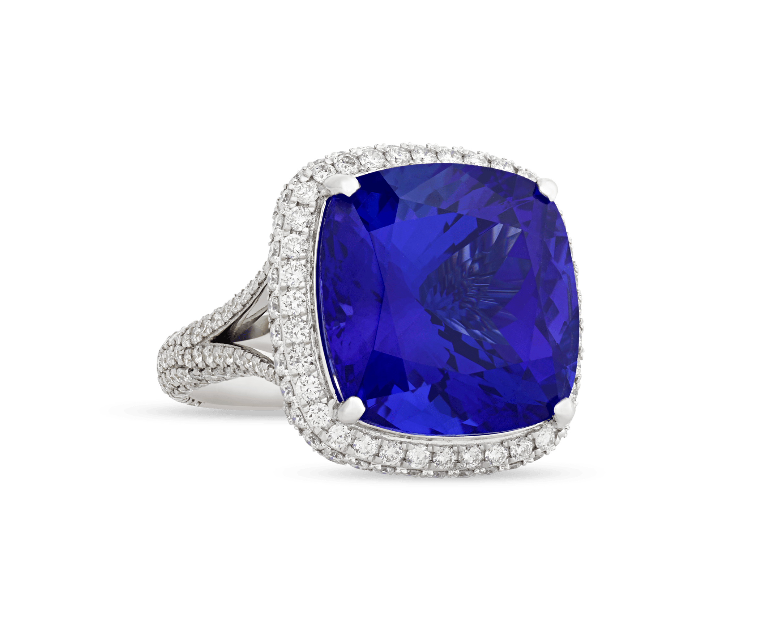 - A monumental 22.43-carat cushion-cut tanzanite is set in this convertible ring