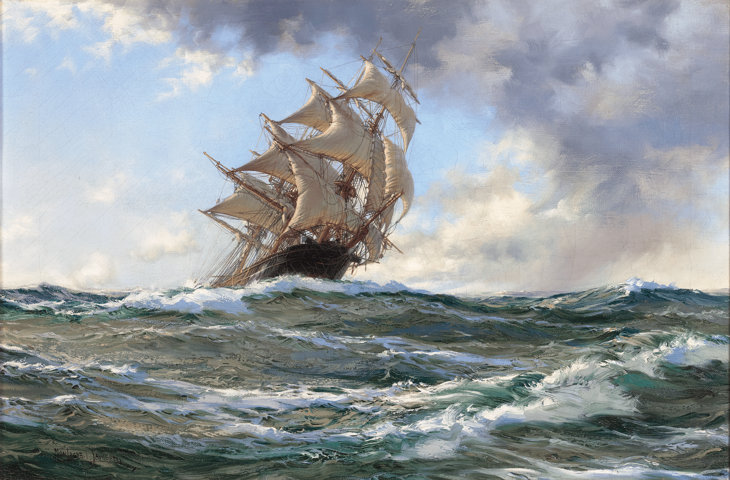 Signed "Montague Dawson" (lower left)