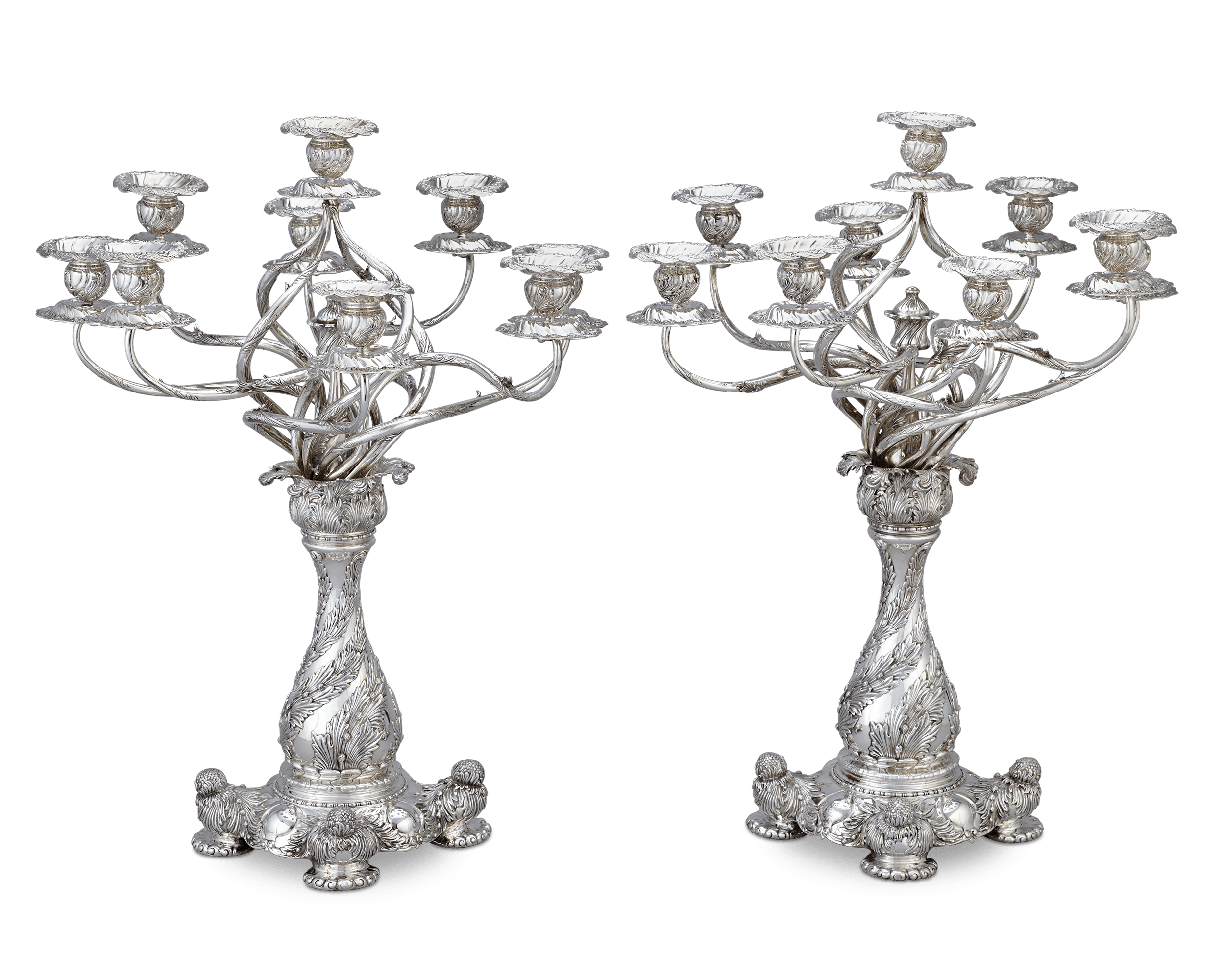 - The nine-light candelabra display a remarkable level of detail in the Chrysanthemum pattern